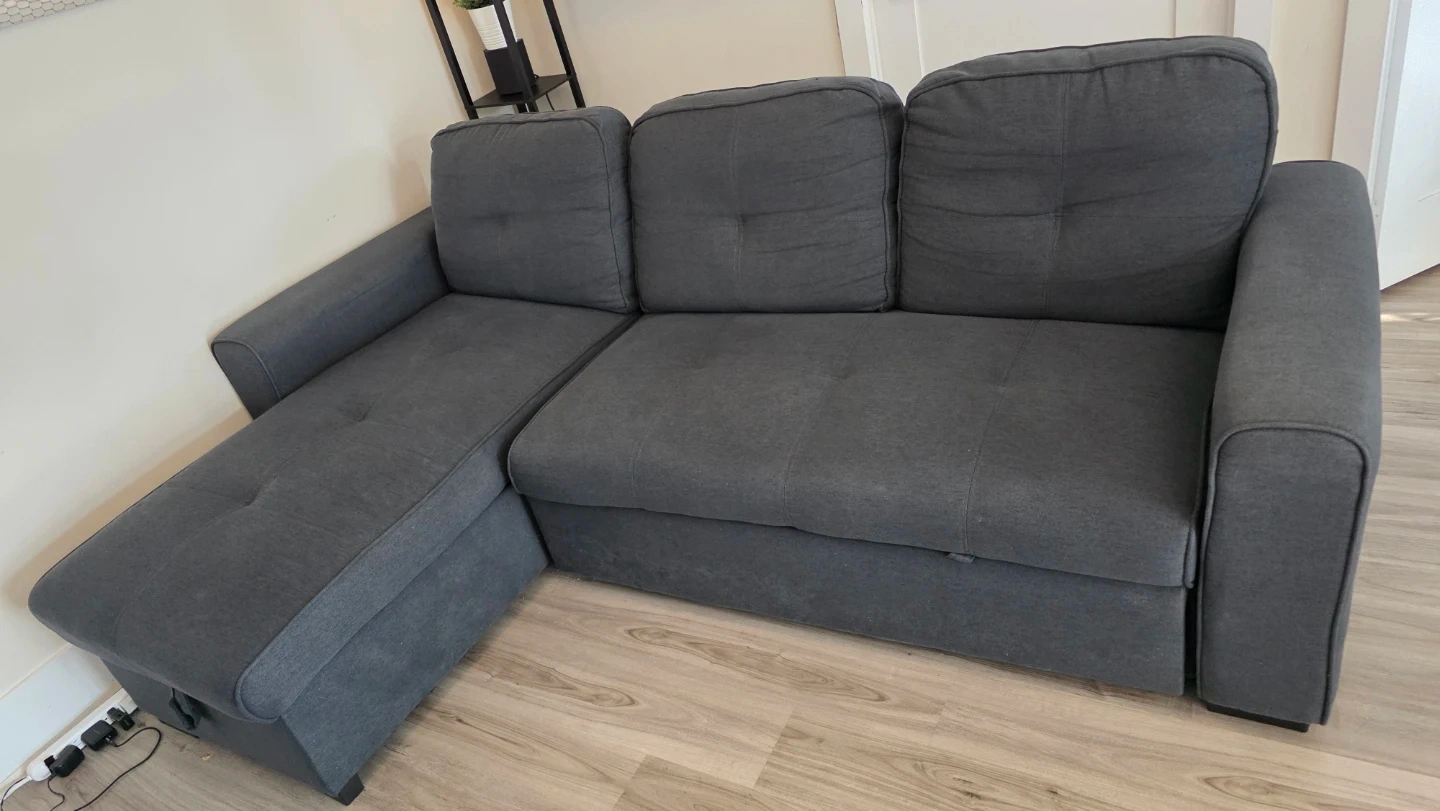 L-Shaped Sectional Sofa with Chaise, Pull-Out Bed & Storage