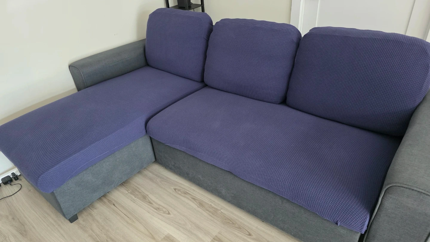 Navy couch covers (as pictured) are included for free.