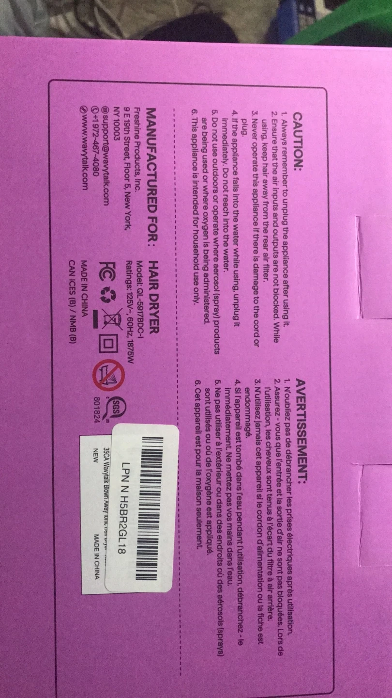 This is a WAVYTALK Ionic Hair Dryer. It comes in its original box. The dryer is designed for household use only. It's great for getting your hair dry and styled!