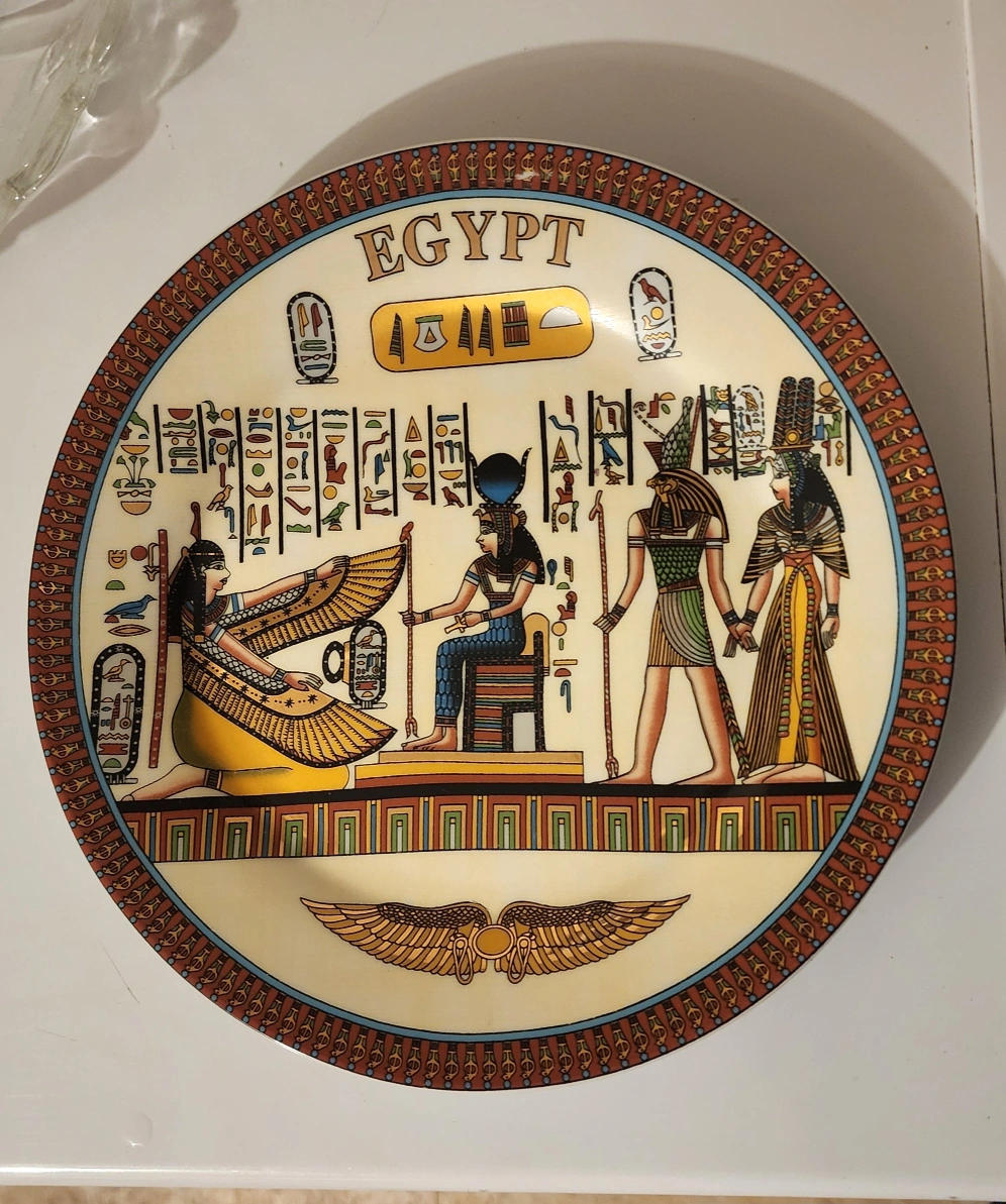 Beautiful decorative plate featuring ancient Egyptian imagery. Perfect for adding a touch of history and culture to your home decor