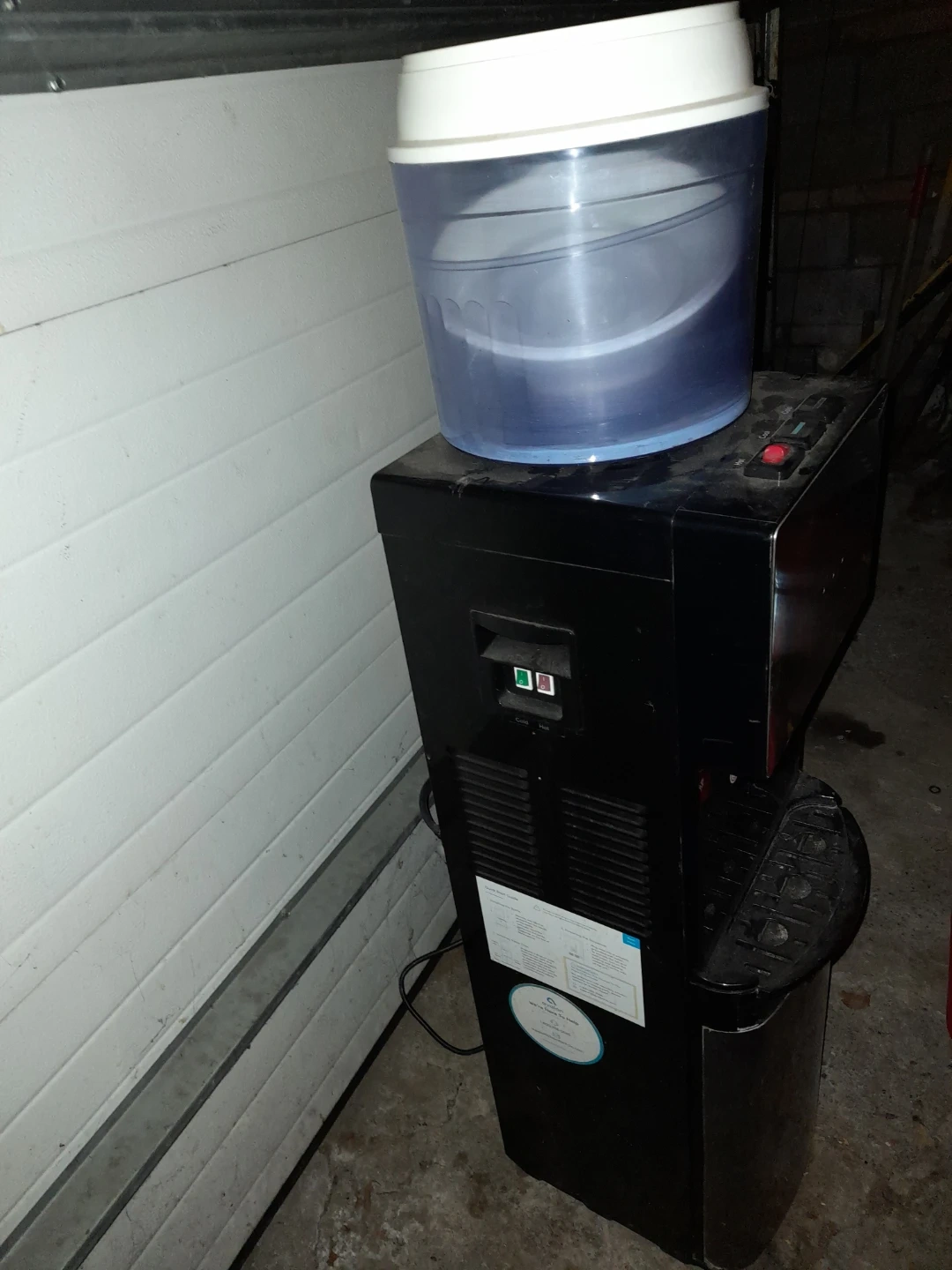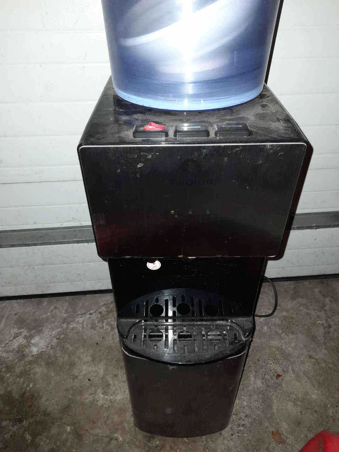 This Avalon water cooler dispenser offers hot, cool, and cold water options. It has a black finish and includes the water jug. Perfect for offices or homes needing convenient access to different water temperatures.