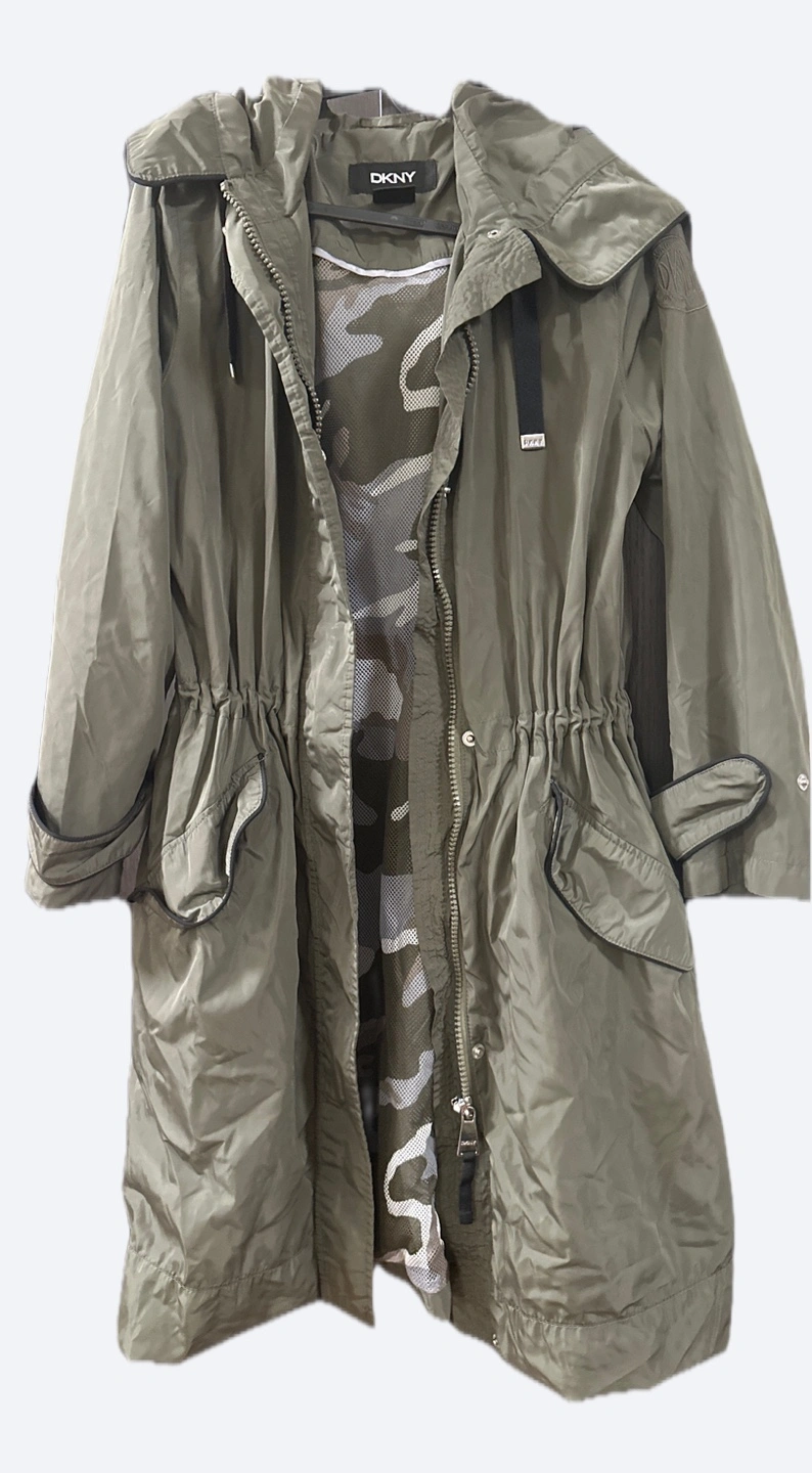 DKNY Olive Green Camo-Lined Hooded Anorak