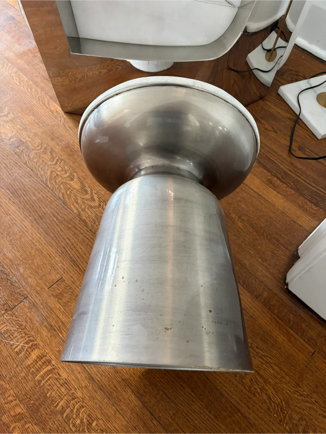 The solid marble top adds weight and durability, while the tapered metal base gives the table a clean contemporary / modern design.