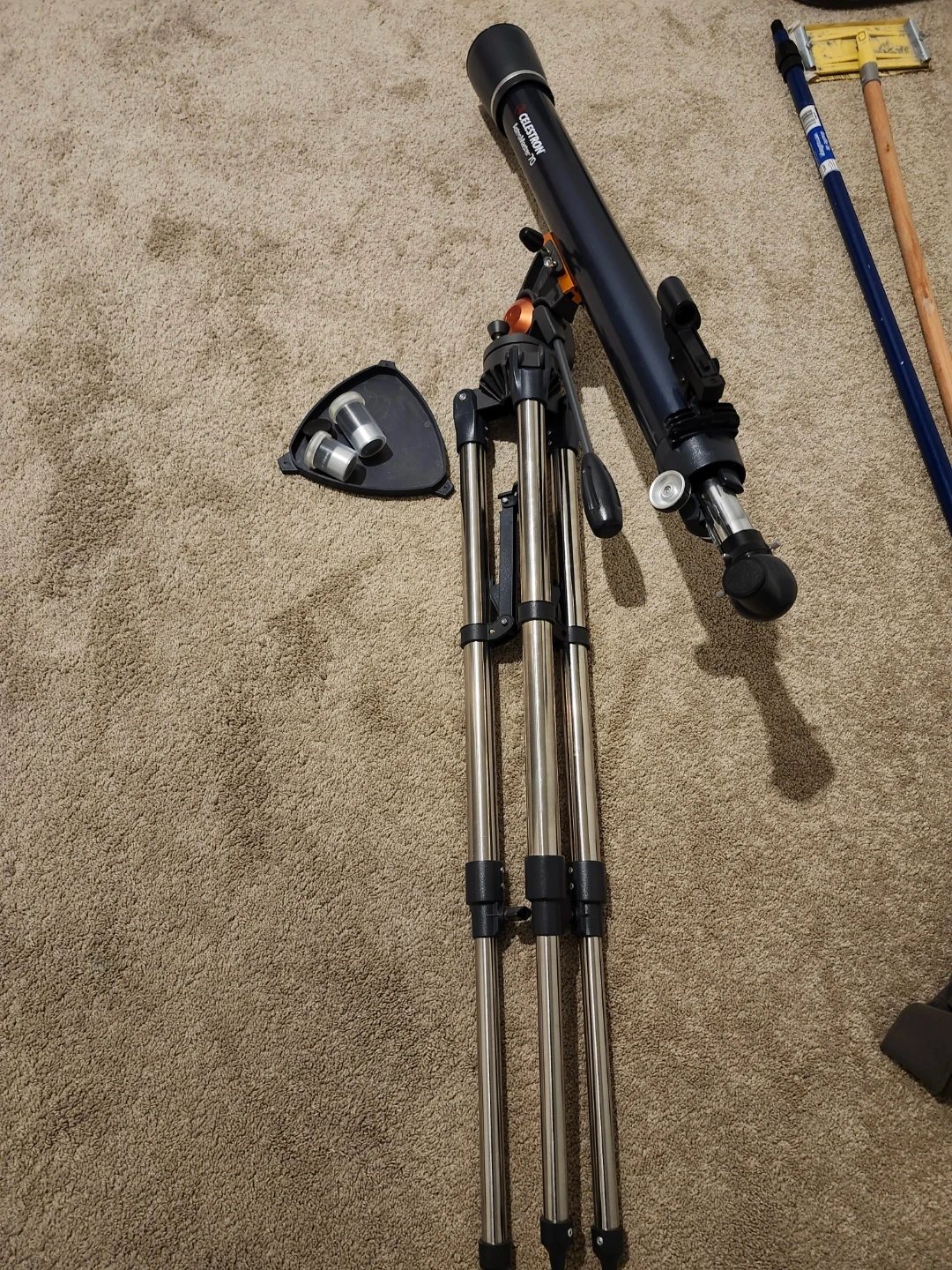 This Celestron AstroMaster LT 70AZ telescope is a great way to explore the night sky! It's a refractor telescope with a 70mm aperture. Includes a tripod and multiple eyepieces for different magnifications.