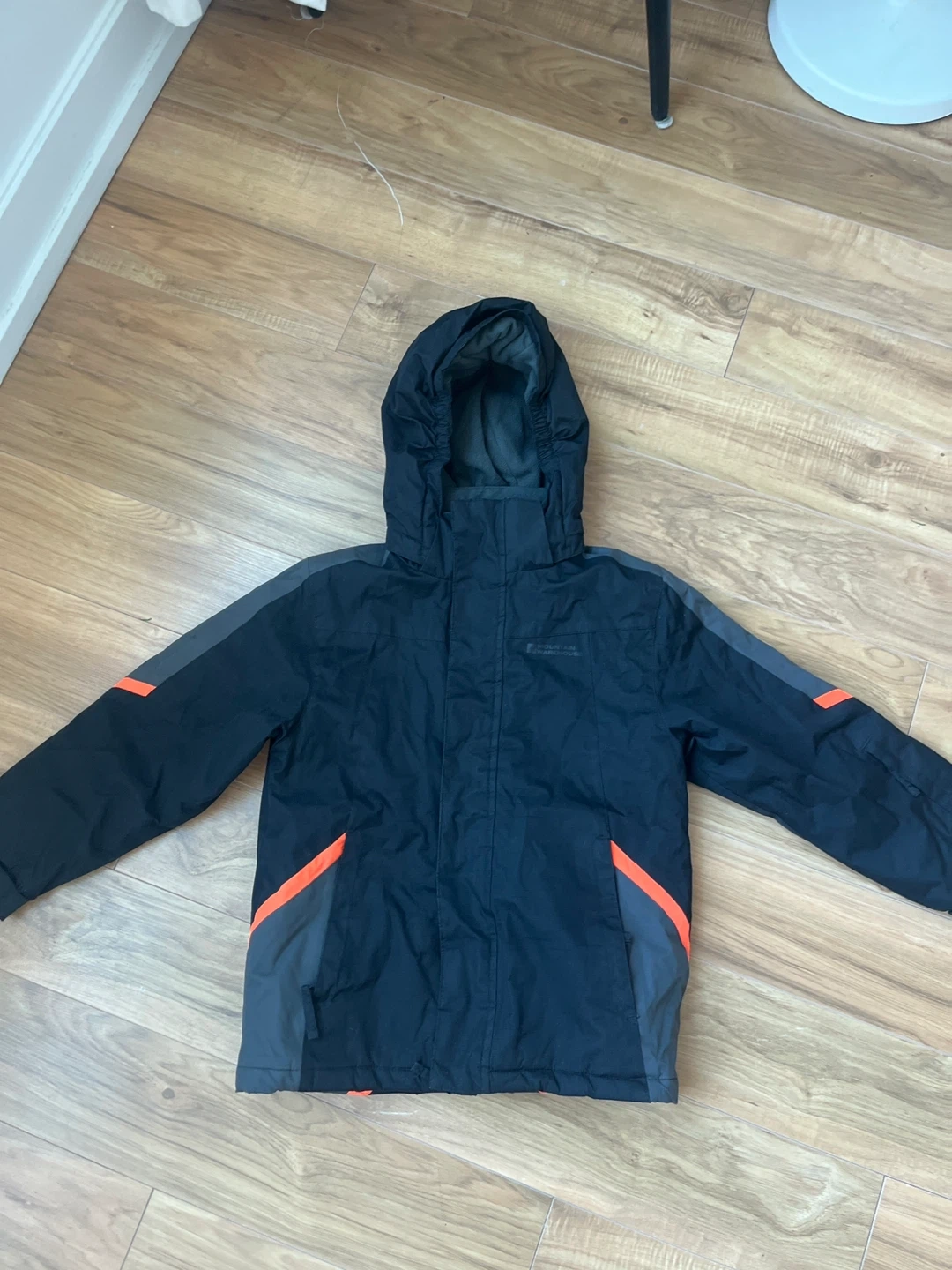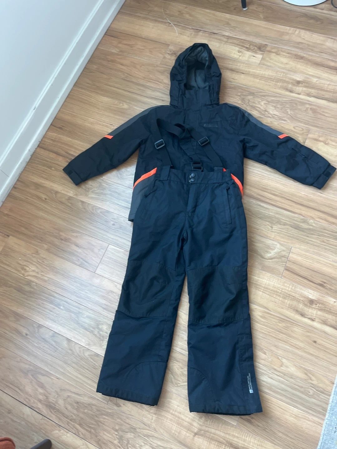 This is a Mountain Warehouse Snow jacket and snow pants set. The size is 7-8 years.