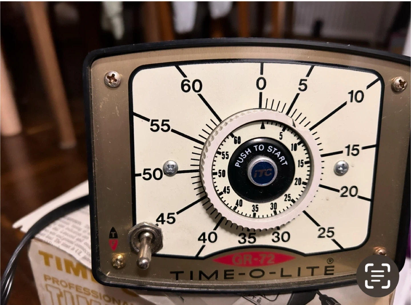 Selling a TIME-O-LITE Professional Timer, model GR-72. It comes with the original box and looks to be in good condition. This timer is designed for photographic use and has an automatic re-set feature. It operates at 120 volts and 60 hertz, consuming 750 watts. Perfect for your darkroom needs!
