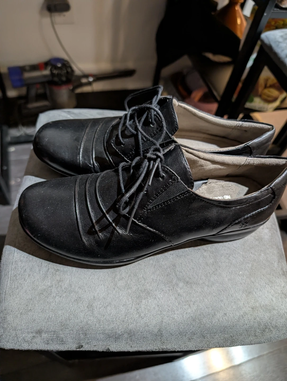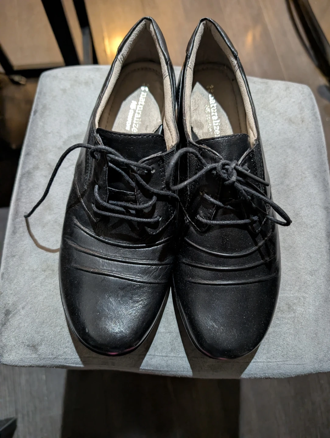 Selling a pair of Naturalizer black leather shoes in size 8 W. They're in good condition and would be great for work or casual wear