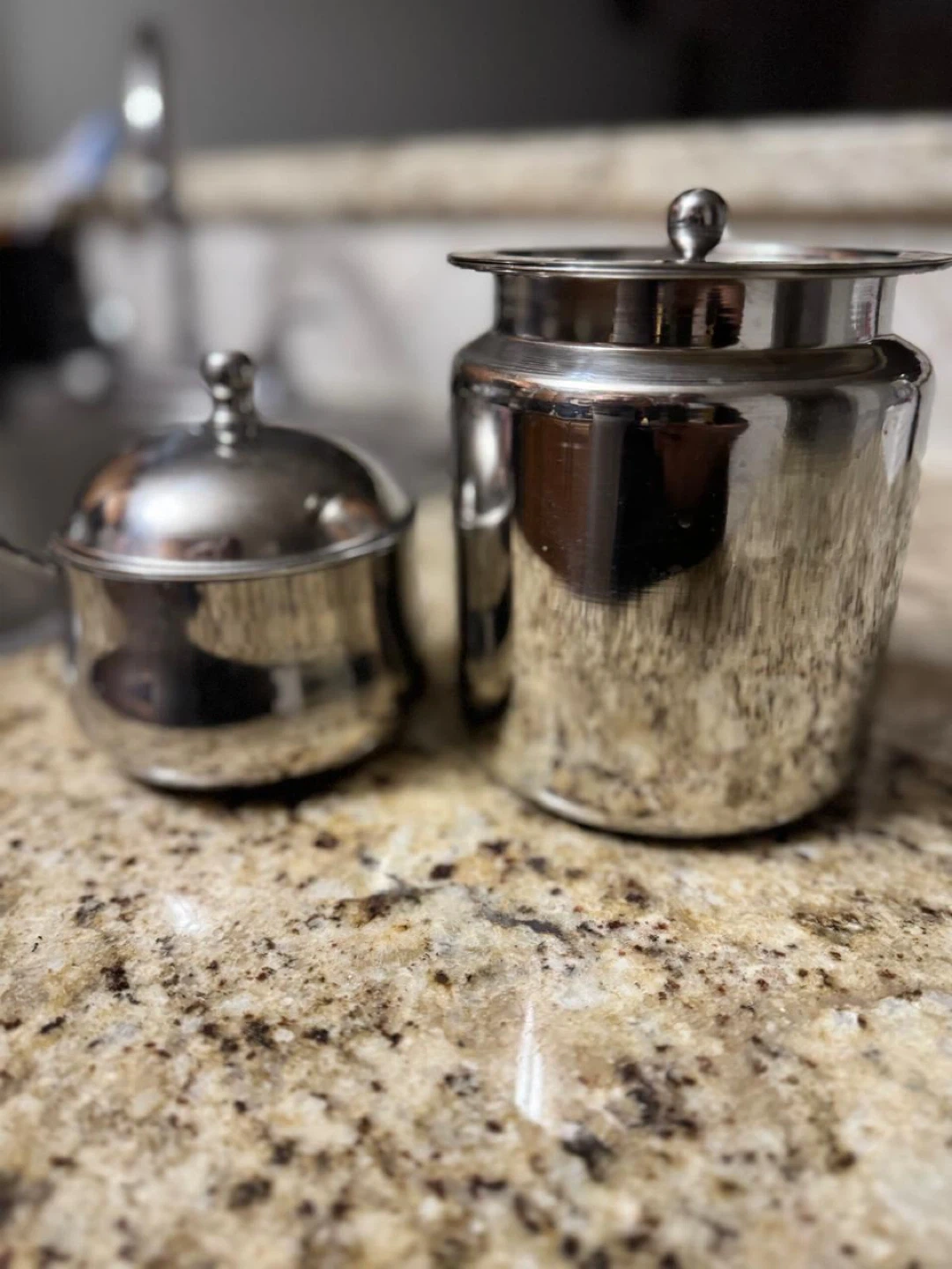Selling a set of stainless steel kitchen canisters. They're in great shape and perfect for storing your sugar, flour, or other pantry staples! They will add a touch of elegance to your kitchen counter.