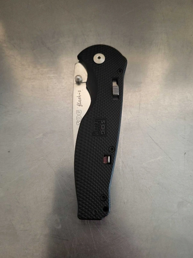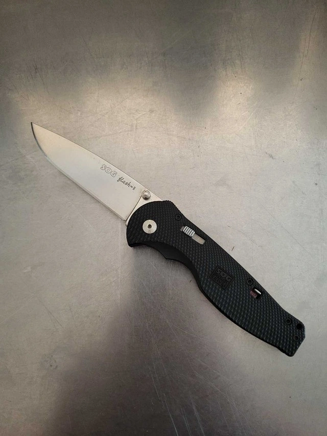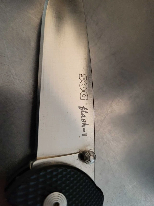 Buy & SellSOG Flash II folding knifeSOG Flash II folding knife$30Like new, barely used SOG folding knife. No scratches, marrs, or chips. Blade is recently sharpened.WHERE TO MEETCheck LocationView MapSELLERAidenLeslieville14912 reviews1 chats·1 favorites·43 viewsSEND CHAT TO SELLERHi Aiden! I’m interested in your listing.Hi Aiden! I’m interested in your listing.Get the Karrot app to chatSign In to chat