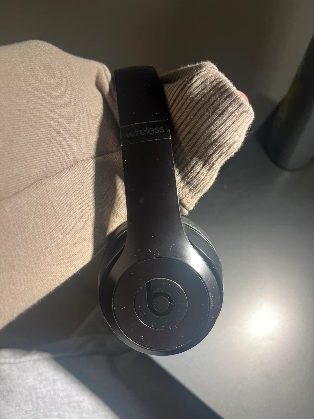 Beats Solo 3 wireless on-ear headphones in black. These headphones offer a comfortable fit and a long battery life. They're great for everyday listening.