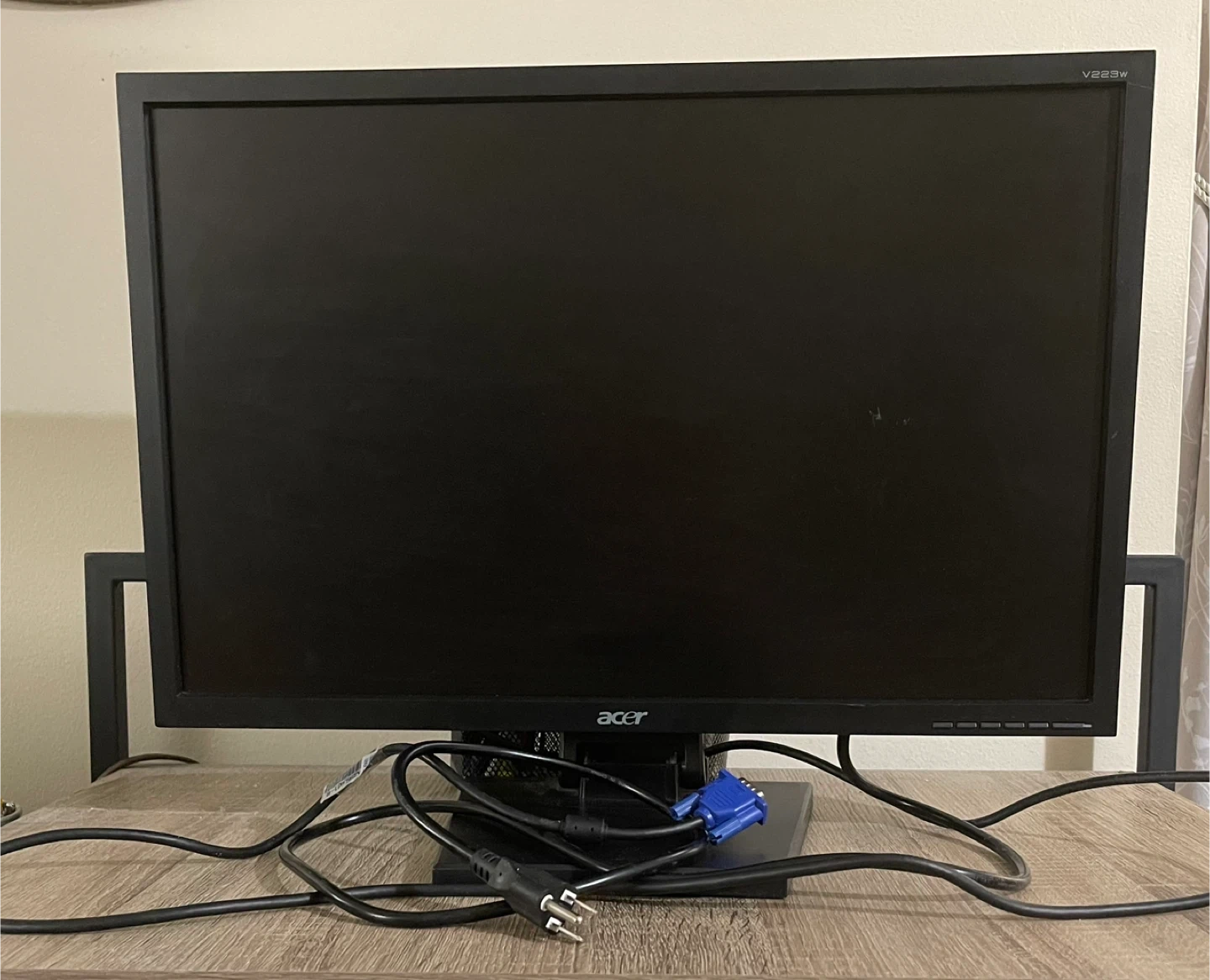 This is a 20” Acer V223W 22-inch widescreen LCD monitor. It connects via VGA and comes with its power and connectivity cables. Perfect for work, games, and everyday computing tasks. Excellent condition. From smoke-free, pest-free, and pet-free home.