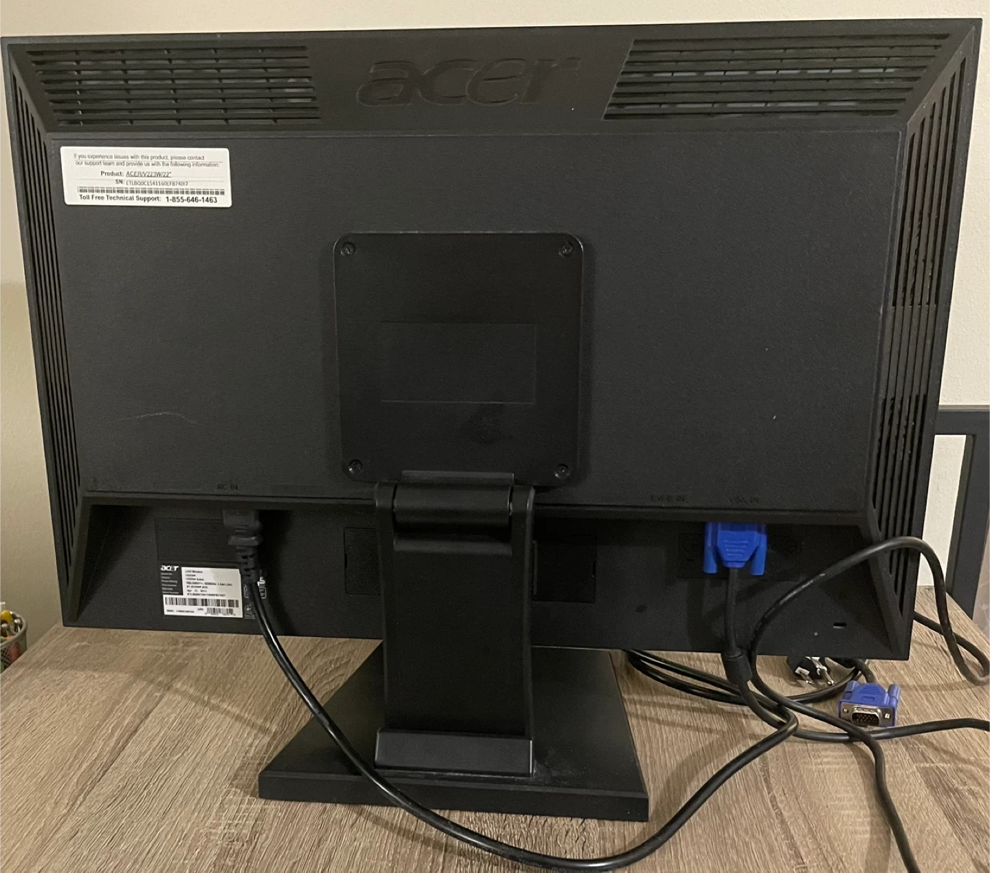 This is a 20” Acer V223W 22-inch widescreen LCD monitor. It connects via VGA and comes with its power and connectivity cables. Perfect for work, games, and everyday computing tasks. Excellent condition. From smoke-free, pest-free, and pet-free home.