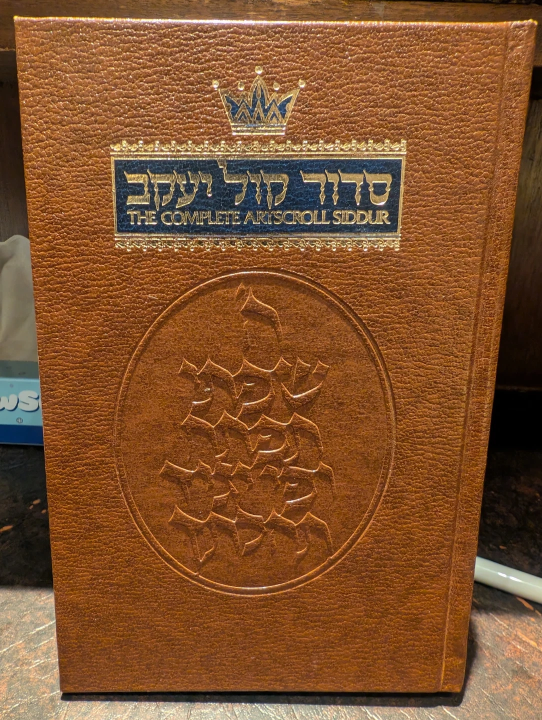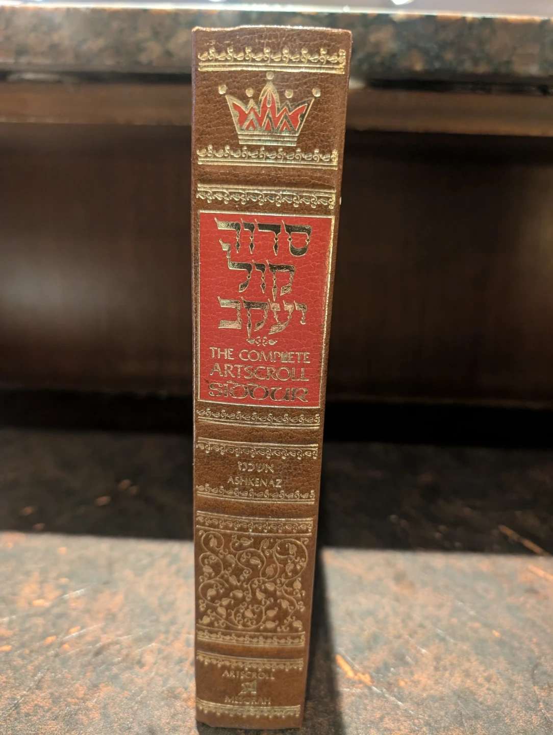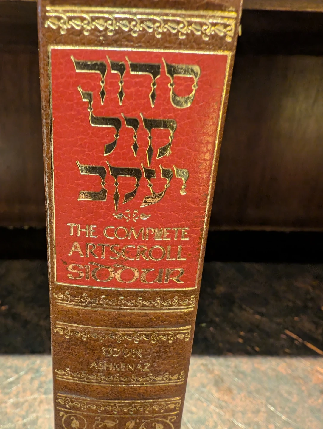 This is The Complete Artscroll Siddur. It's a leather-bound prayer book. This edition includes the Ashkenaz translation.