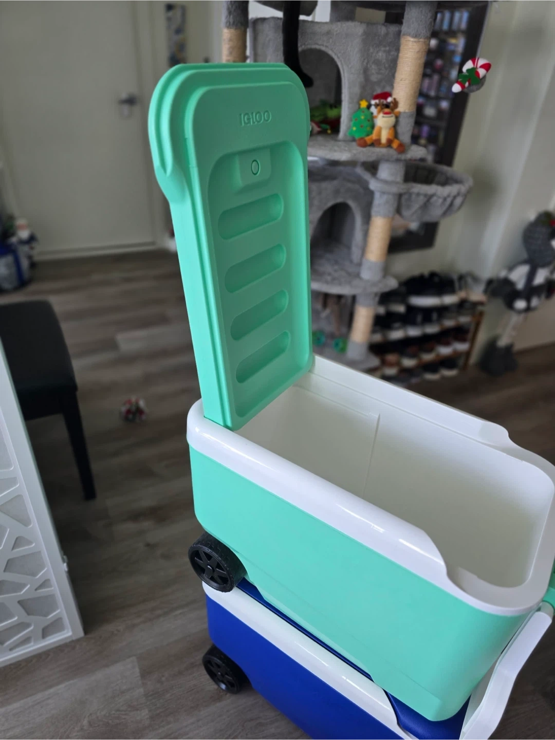 I have two Igloo ice chests for sale! One is a cool mint color, and the other is blue. Both are 38-quart capacity and have wheels for easy transport. Perfect for picnics, camping, or tailgating