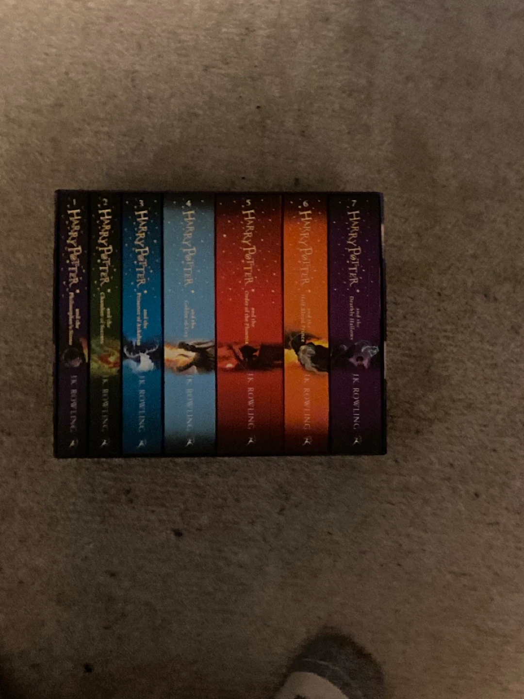 This is a box set of the Harry Potter books by J.K. Rowling. It includes books 1 through 7. The books are in a decorative slipcase.