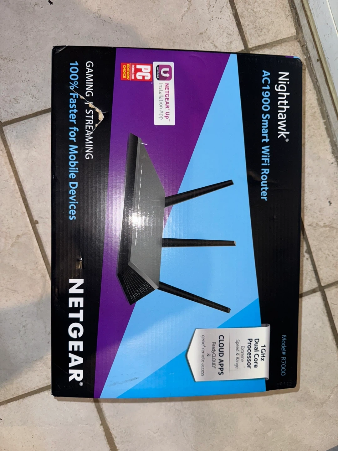 NETGEAR Nighthawk AC1900 Smart WiFi Router with a 1GHz dual-core processor. Offers extreme speed and range with cloud apps like ReadyCLOUD and genie remote access. Supports gaming and streaming, 100% faster for mobile devices. Includes PCMag Editors' Choice.