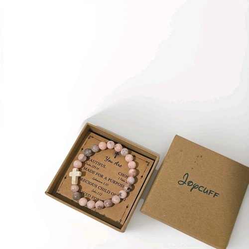 This light pink, beaded stone bracelet from Joycuff is perfect for women looking for a meaningful and stylish accessory. The motivational Bible verse theme adds a touch of faith and inspiration, making it a wonderful gift.