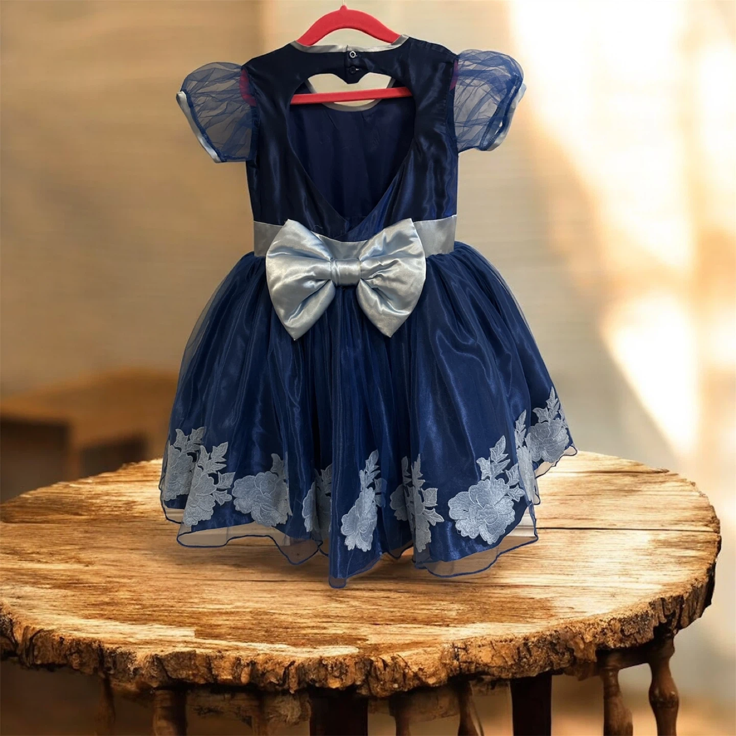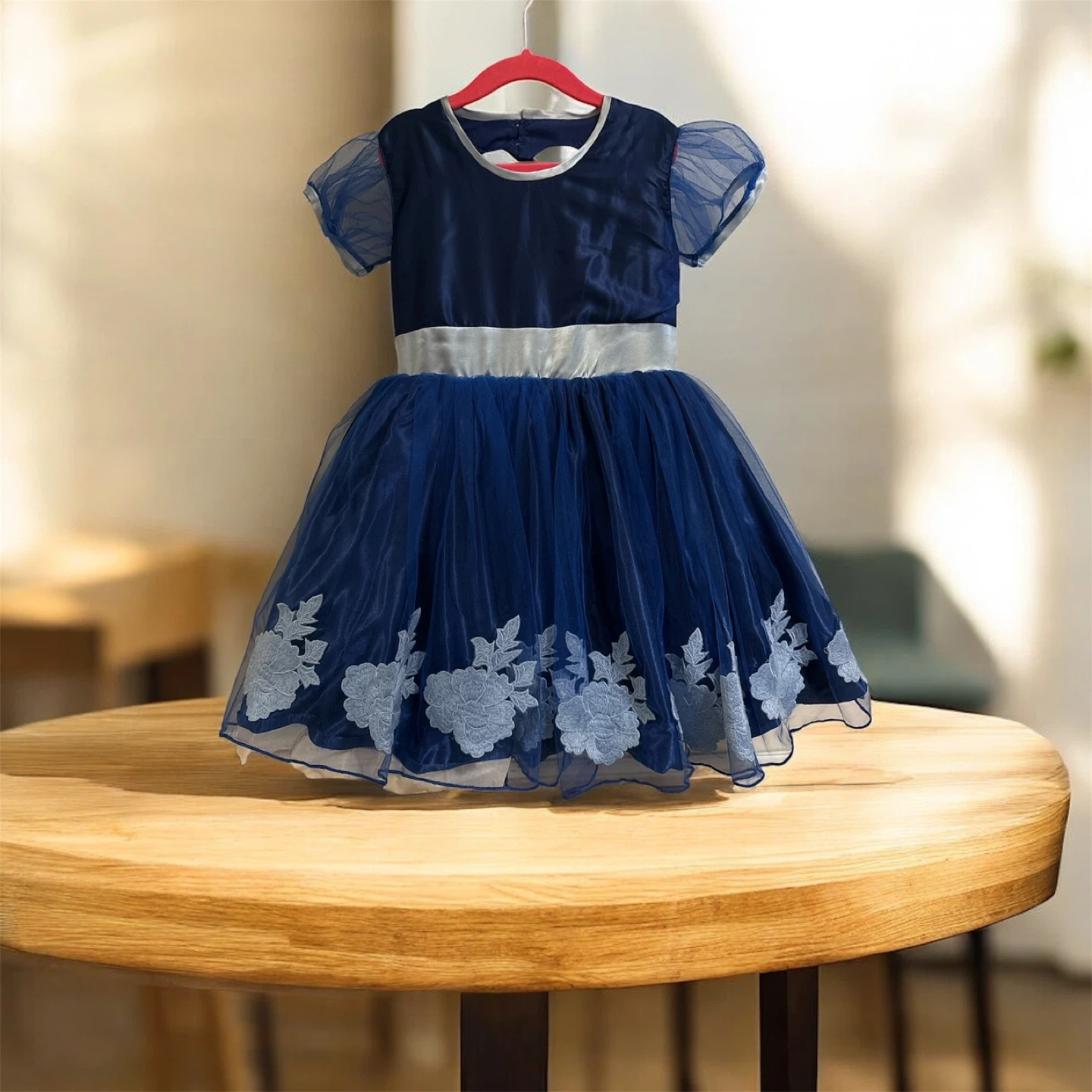 Navy Blue Girls' Dress with Satin Blue Accents 5-7Y