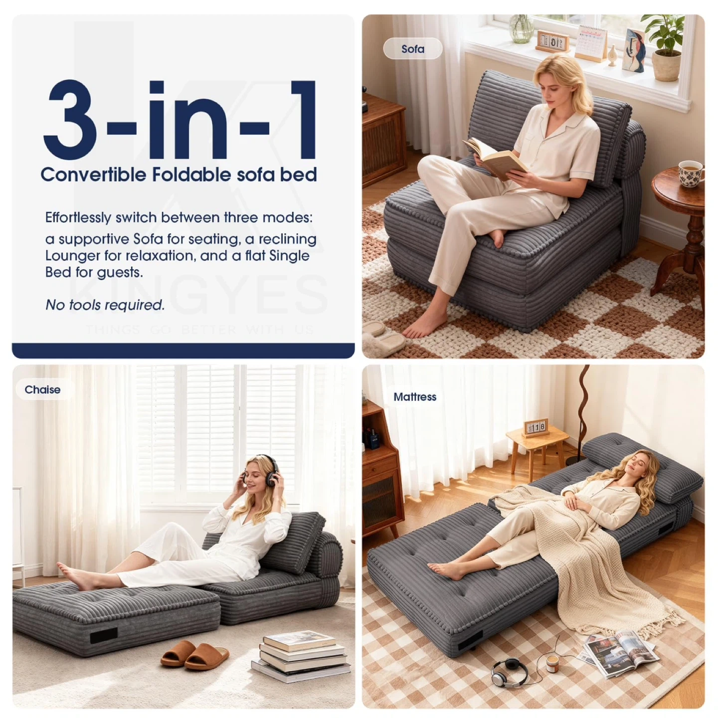 KINGYES Folding Sofa Bed, Corduroy Convertible Sleeper Chair
