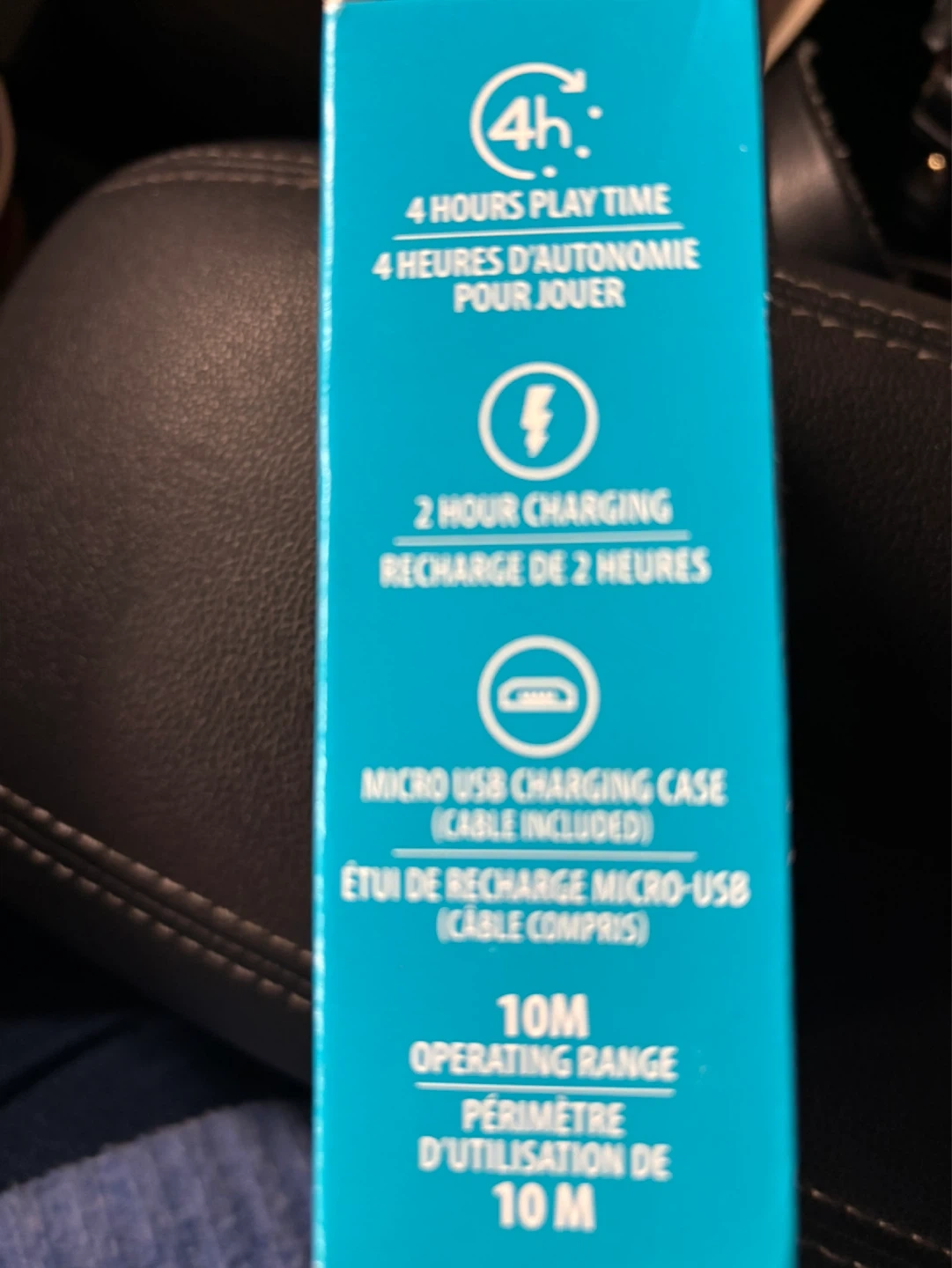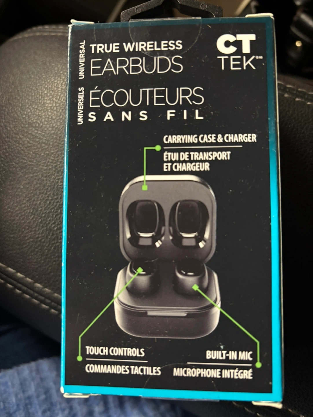These CT Tek true wireless earbuds come with a carrying case and charger. They offer touch controls, a built-in mic for hands-free calling, and 4 hours of play time. The operating range is 10 meters.