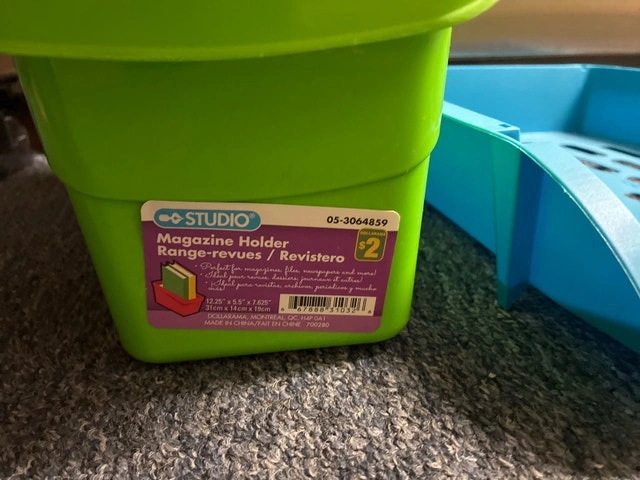 Keep your magazines, newspapers, and more neatly organized with this Studio Magazine Holder! It features dimensions of approximately 12.25" x 5.53" x 7.625". The product is in used condition. 3 of these back to school. Let me know if you're interested!