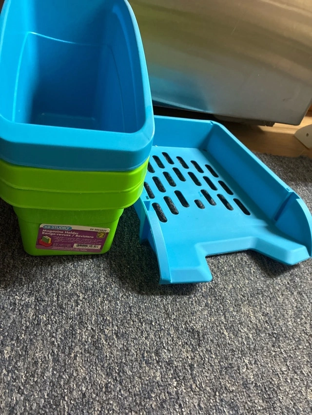 Keep your magazines, newspapers, and more neatly organized with this Studio Magazine Holder! It features dimensions of approximately 12.25" x 5.53" x 7.625". The product is in used condition. 3 of these back to school. Let me know if you're interested!