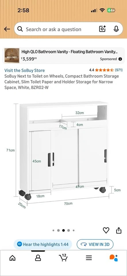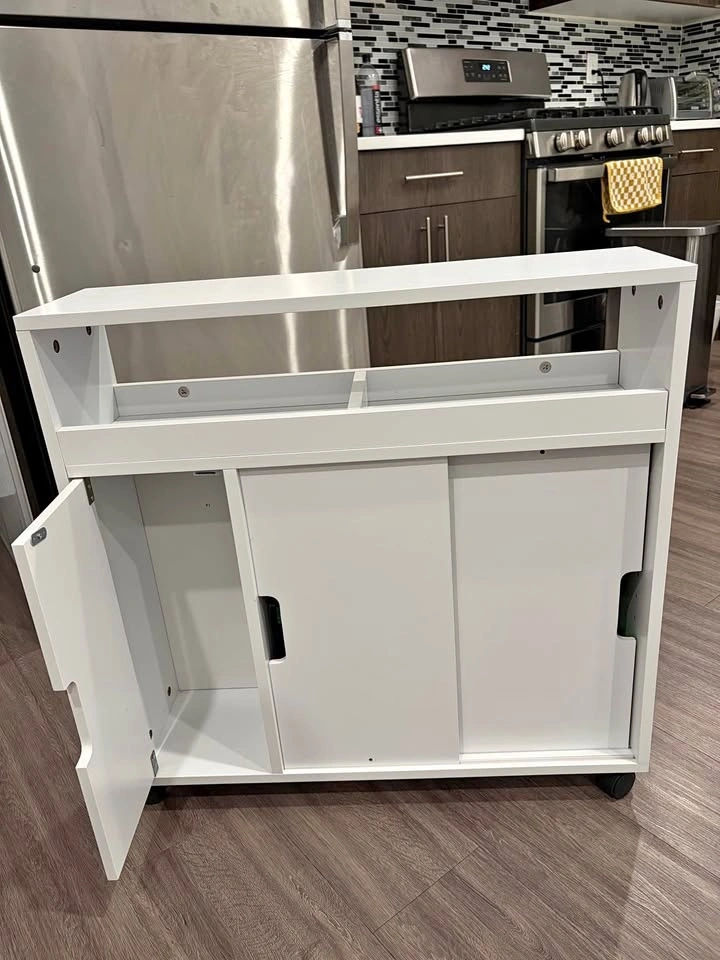 This slim rolling cart is perfect for organizing your bathroom essentials. It features multiple shelves and drawers to maximize storage in small spaces. The wheels make it easy to move around.