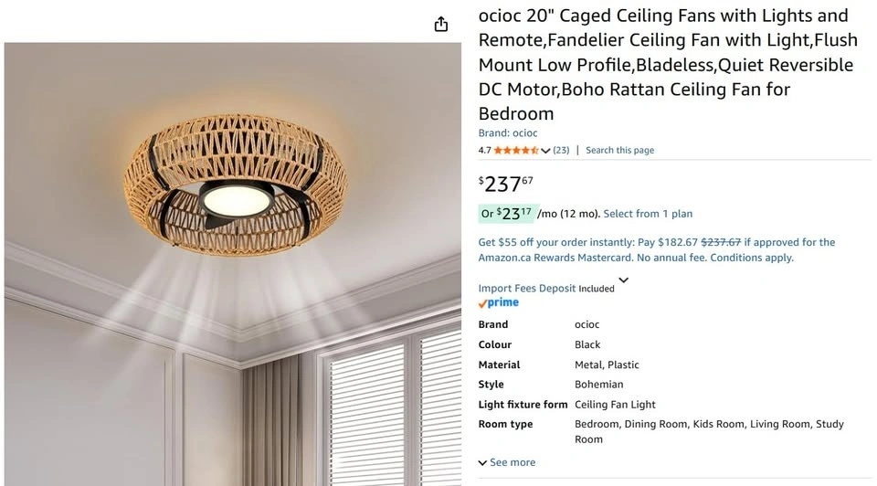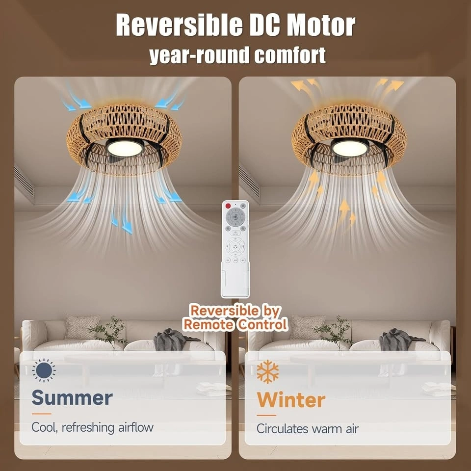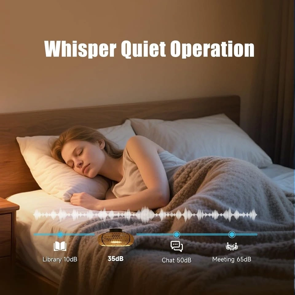 - Remote control with 6 speeds, timer, and no‑beep mode