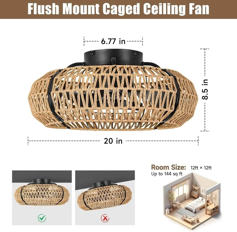 20" Caged Ceiling Fan with LED Light - Flush Mount Remote