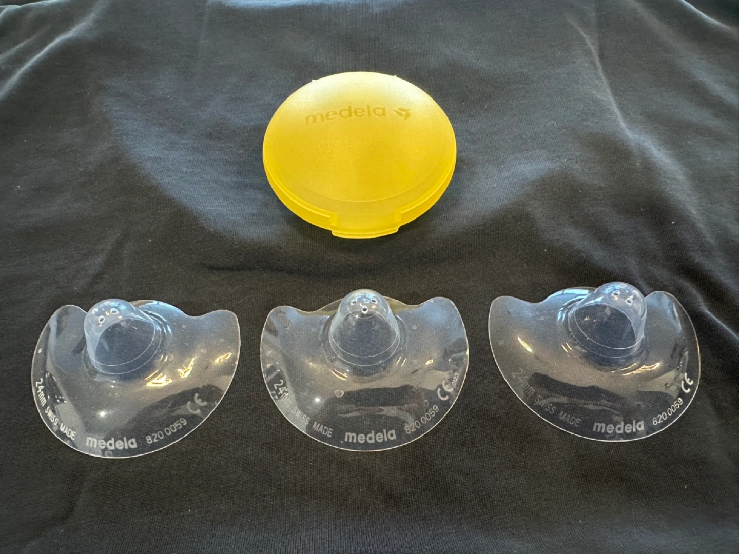 Three Medela 24mm nipple shields. One Medela storage container. EUC. I have 3 sets of 3. $5 each set of 3