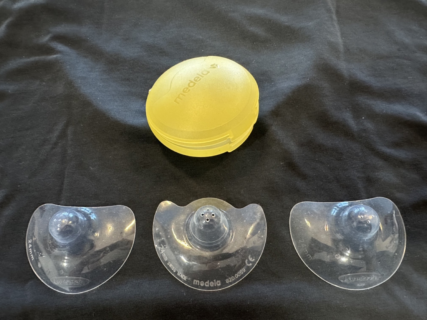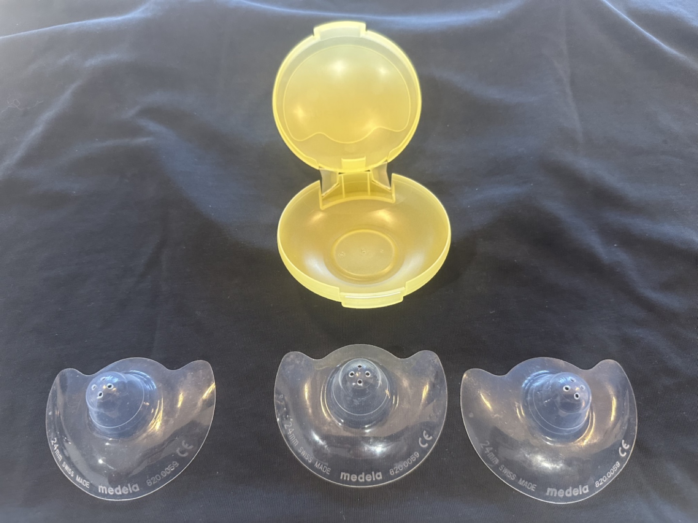 Three Medela 24mm nipple shields. One Medela storage container. EUC. I have 3 sets of 3. $5 each set of 3