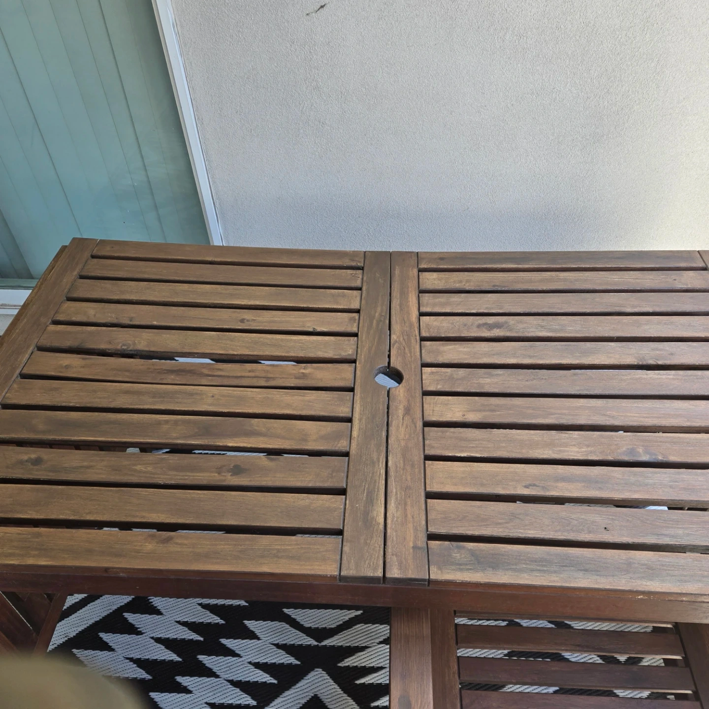 Please note - 2 of the wooden panels on the table is slightly curved downwards. Please refer to photos