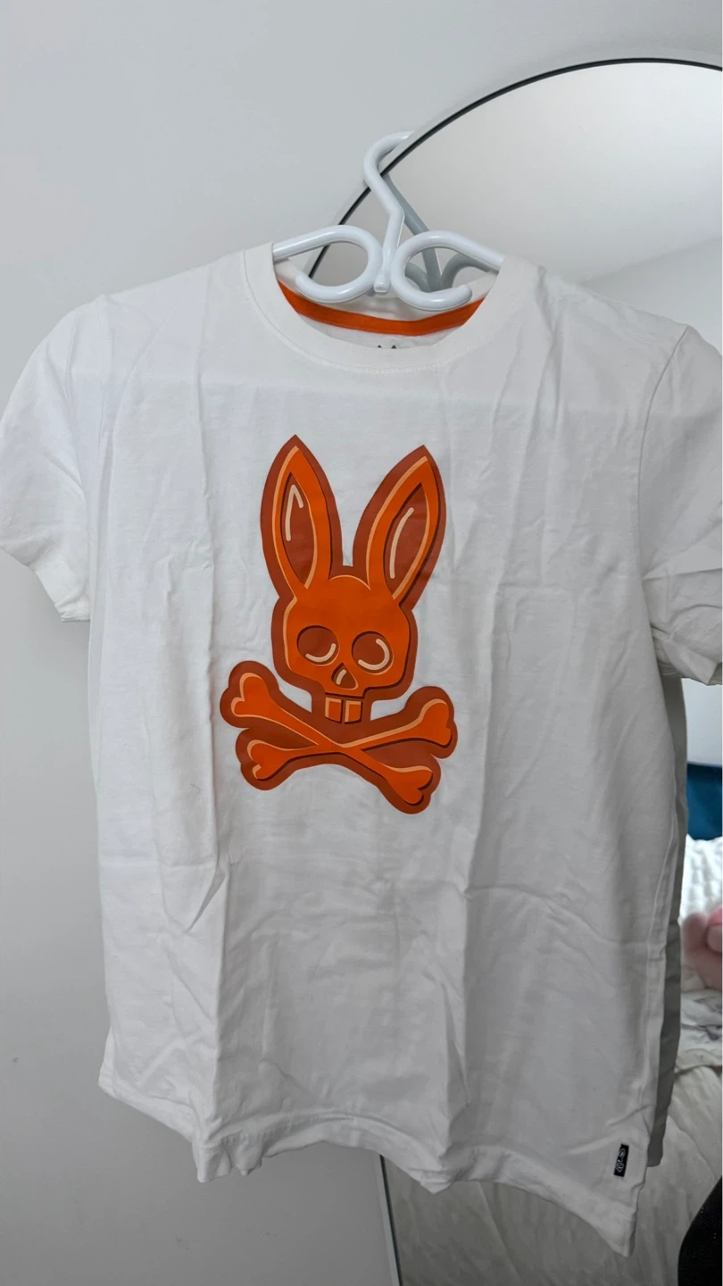 Psycho Bunny graphic t-shirt in white. Made from 100% Pima cotton. This shirt is size 3.