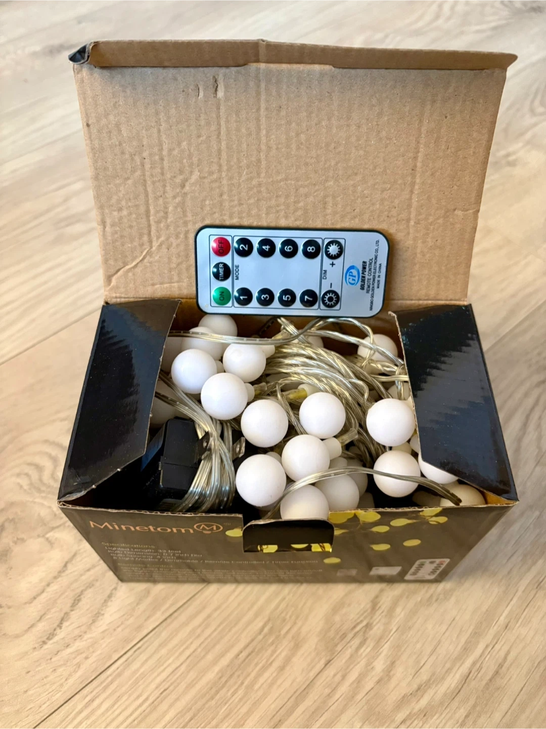 Minetom Globe String Lights with 100 LEDs in warm white.