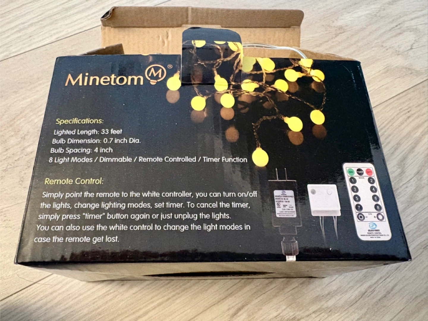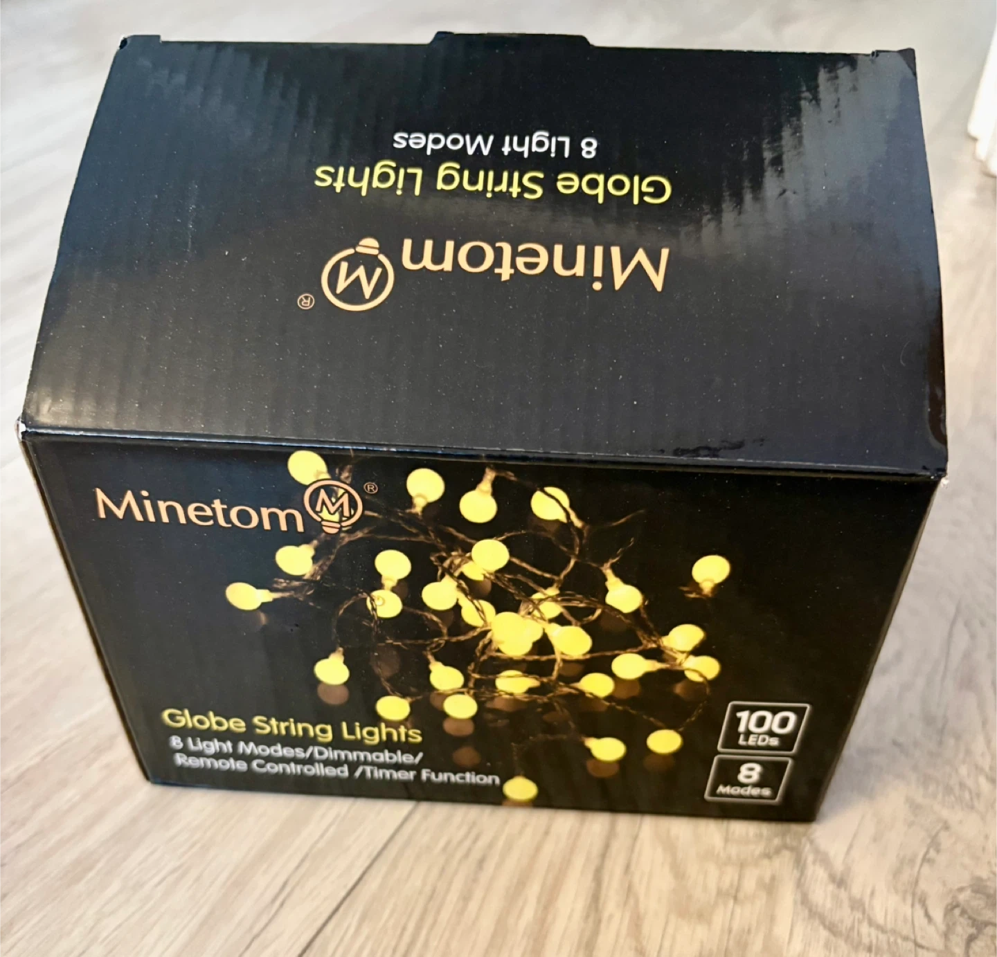 Minetom Globe String Lights with 100 LEDs in warm white.
