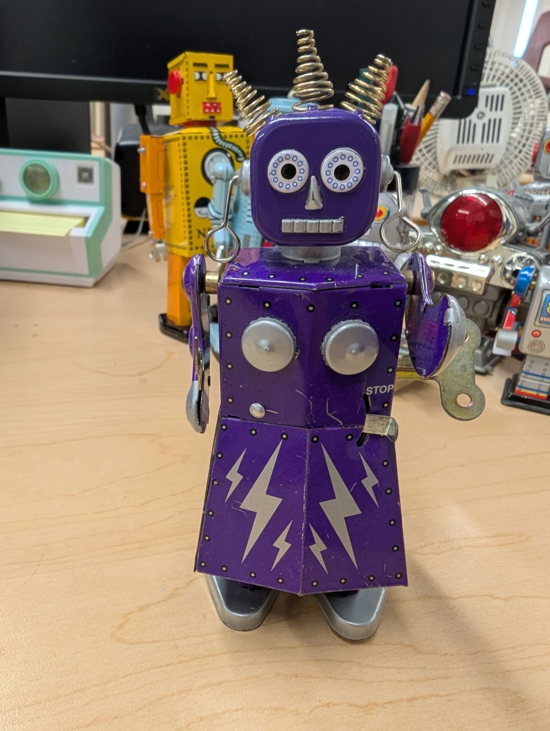 Buy & SellVintage Purple Tin Toy RobotVintage Purple Tin Toy Robot$28This is a Schylling Electra Robot, a purple, limited edition, wind-up tin toy collectible. ConditionGoodWHERE TO MEETCheck LocationView MapSELLERJasonKeswick261 review0 chats·0 favorites·7 viewsSEND CHAT TO SELLERHi Jason! I’m interested in your listing.Hi Jason! I’m interested in your listing.Get the Karrot app to chatSign In to chat