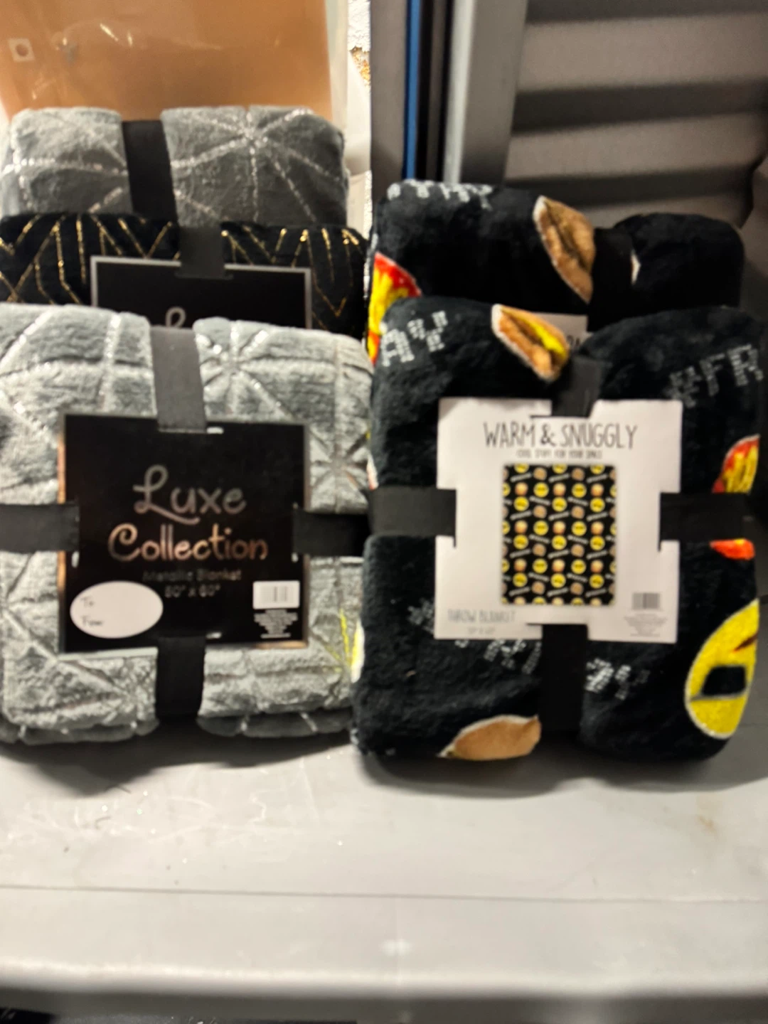 Selling a Luxe Collection metallic blanket. It's brand new and still in its original packaging. The blanket measures 50" x 60". It would be perfect for adding a touch of sparkle to your home decor