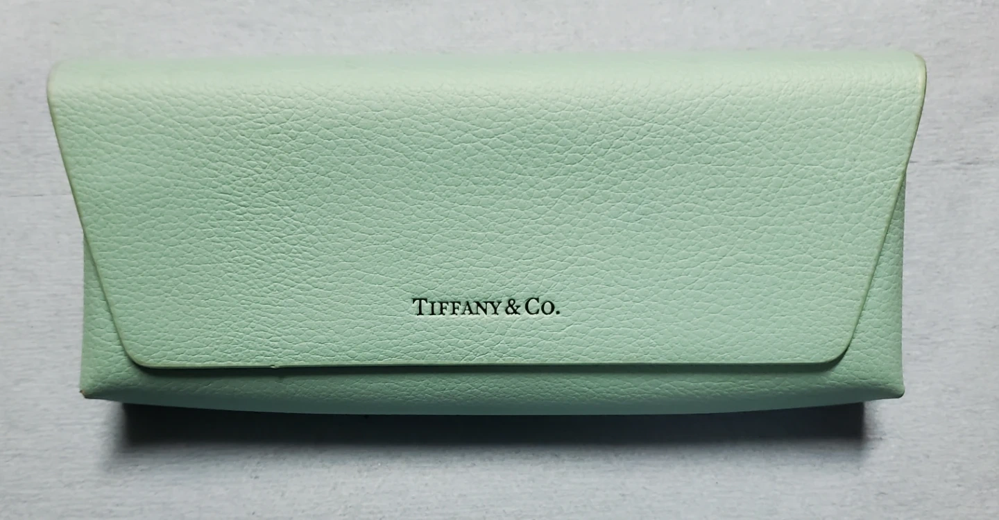 This Tiffany & Co. eyeglass case comes in a lovely mint green colour. It includes a soft cleaning cloth, also branded. The interior is a neutral beige. It's designed to protect your glasses!