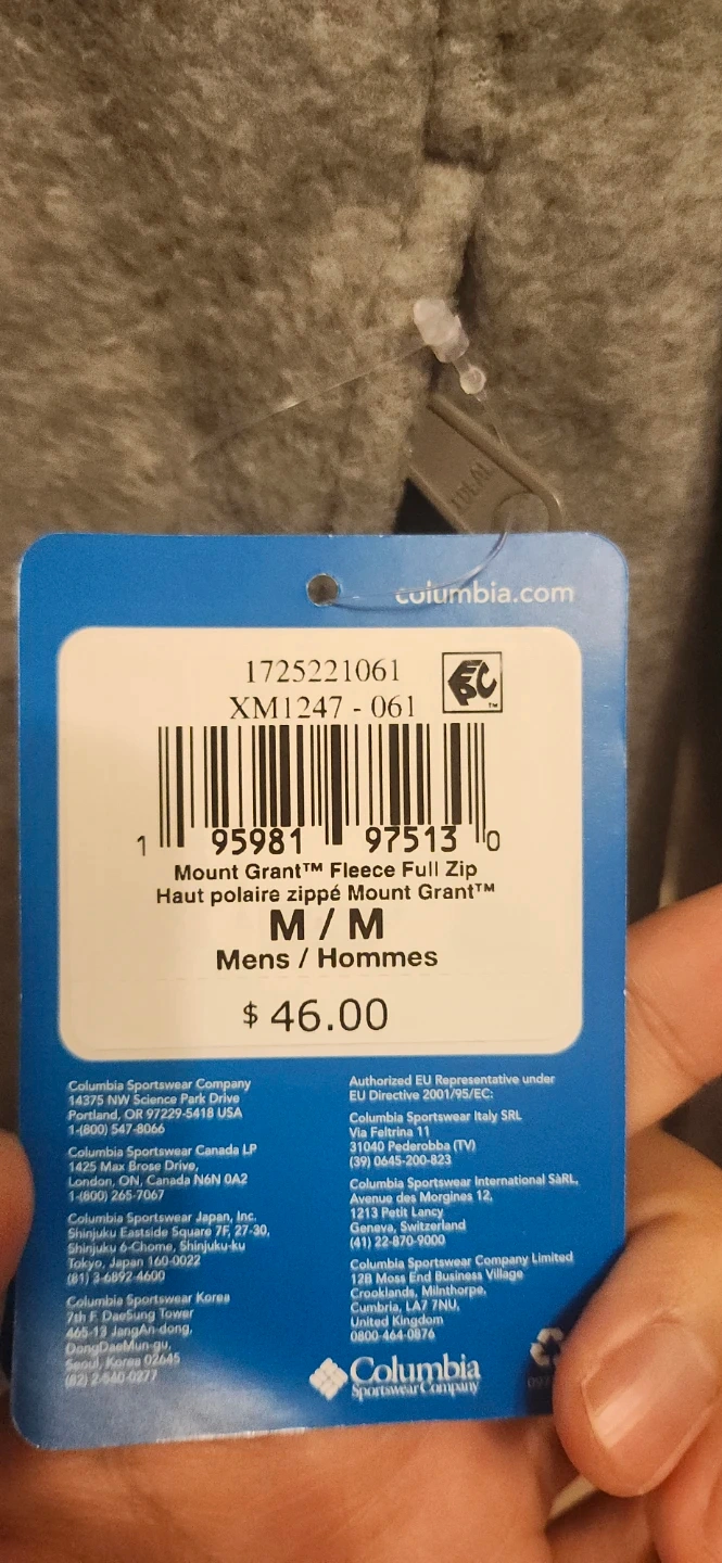 Columbia Mount Grant Fleece Full Zip jacket in grey. It's a men's size medium. Fleece material for warmth.