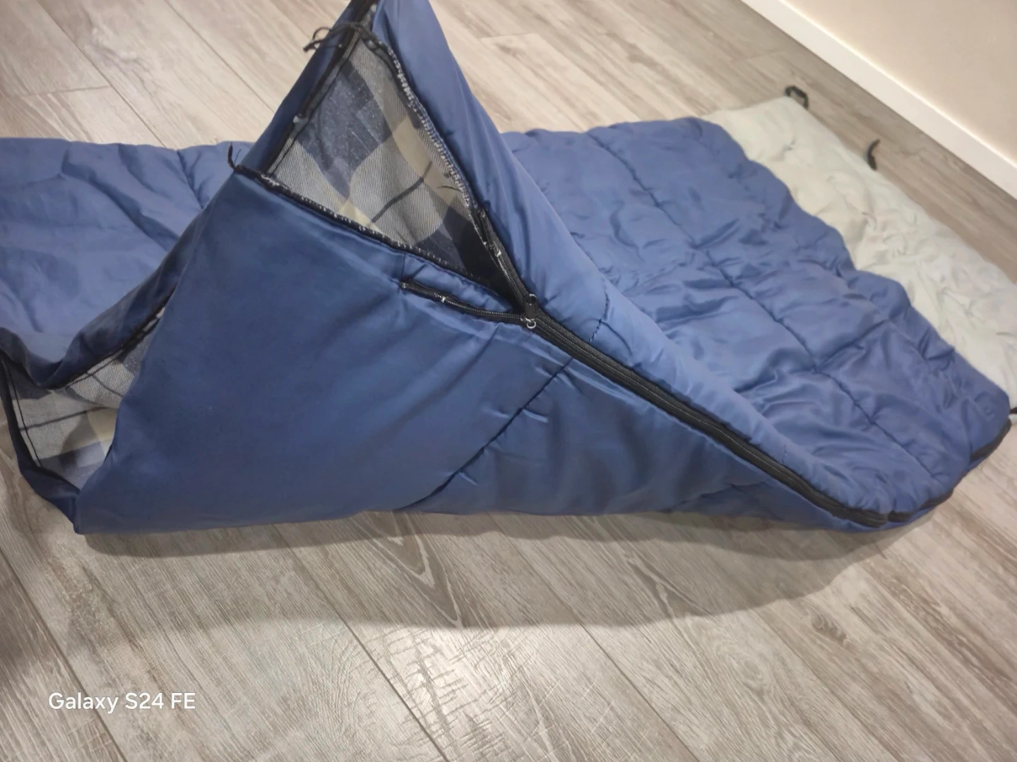 Blue Sleeping Bag - Plaid Interior