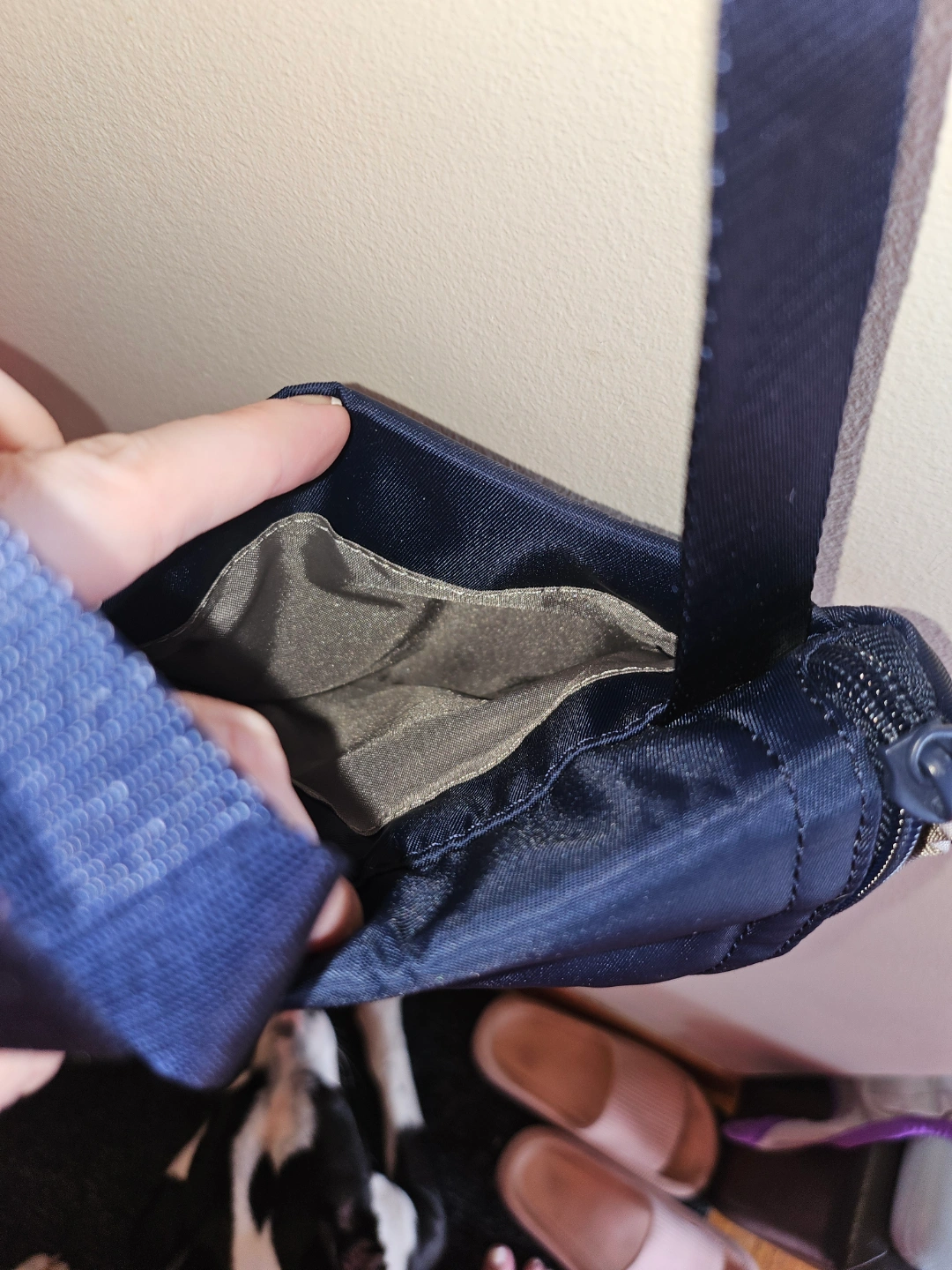 Quality brand name travel bag, only used a couple times. I am short torso and the strap is too long to feel comfortable for me personally. Interior pocket and exterior pocket. Zipper flap closure.