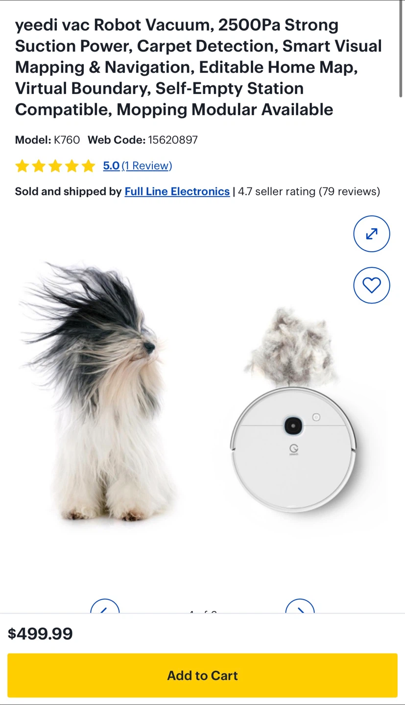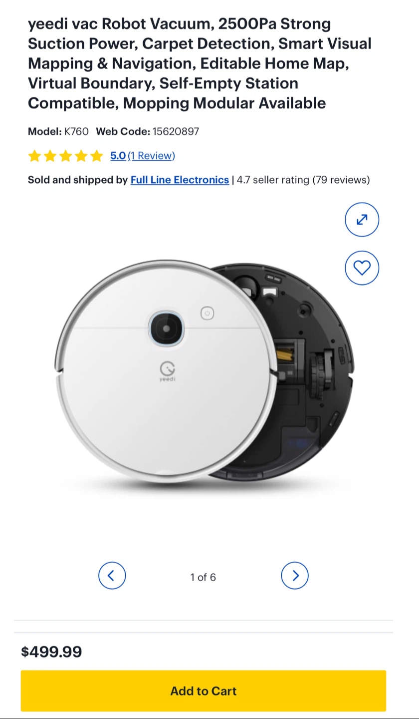 Selling a Yeedi Vac Robot Vacuum, model K760. It has 2500Pa Strong Suction Power, Carpet Detection, Smart Visual Mapping & Navigation, Editable Home Map, Virtual Boundary, and is Self-Empty Station Compatible, with Mopping Modular Available