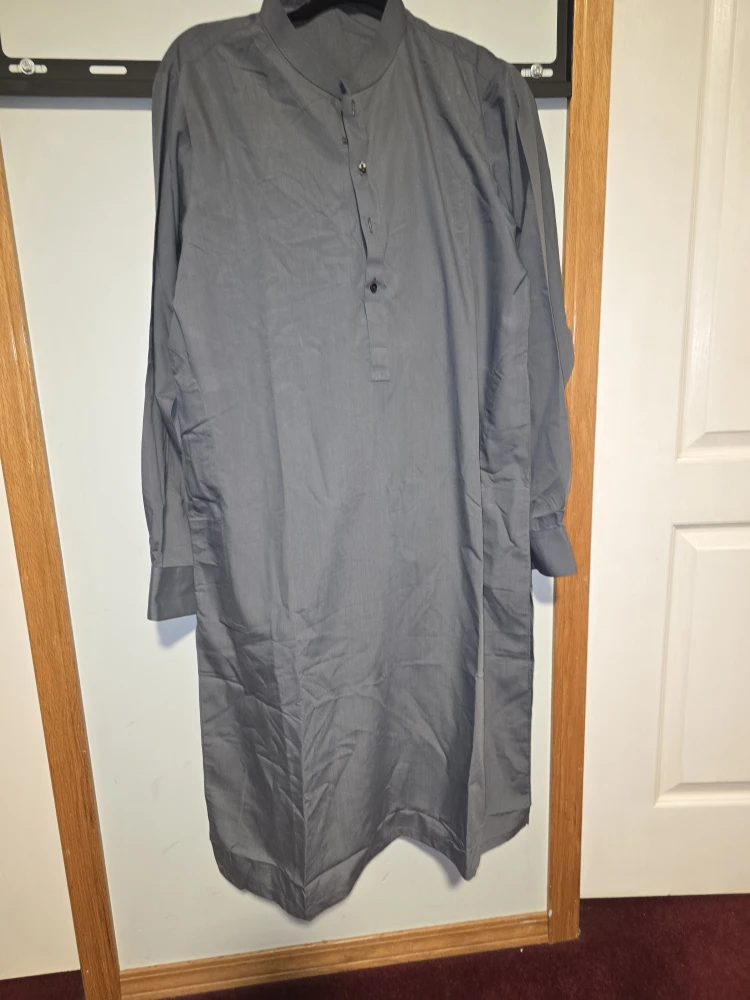 Here's a grey kurta from Diners in size medium. It's in great condition and ready for a new home! The material feels nice and comfortable, perfect for casual wear or special occasions