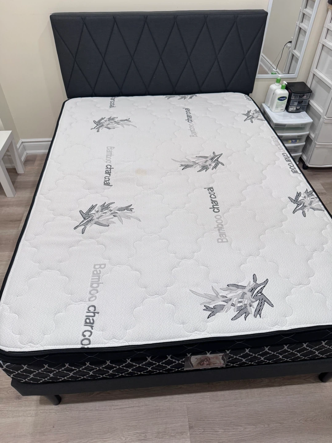 Rest Therapeutic orthopedic type mattress. Features a bamboo charcoal cover for breathability. This mattress is a full size and has a quilted pattern. It's designed for therapeutic support.