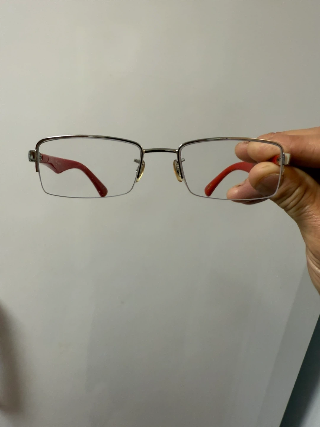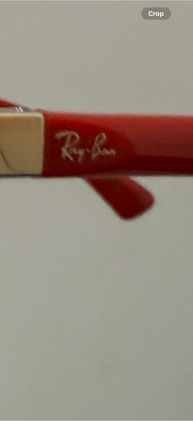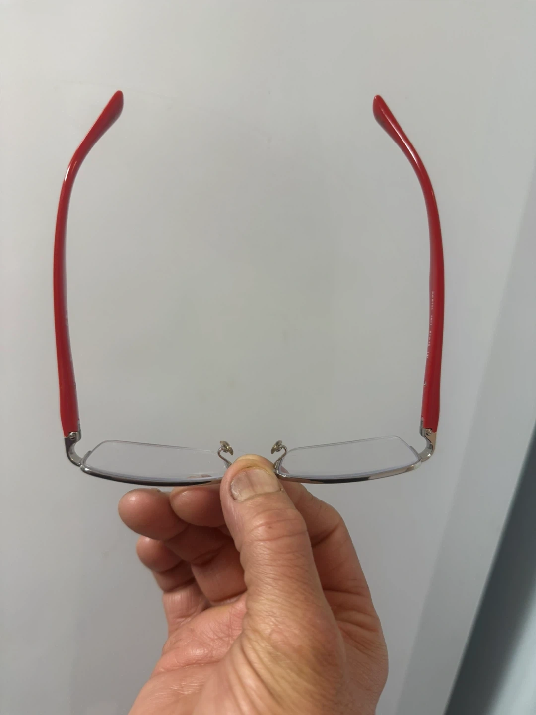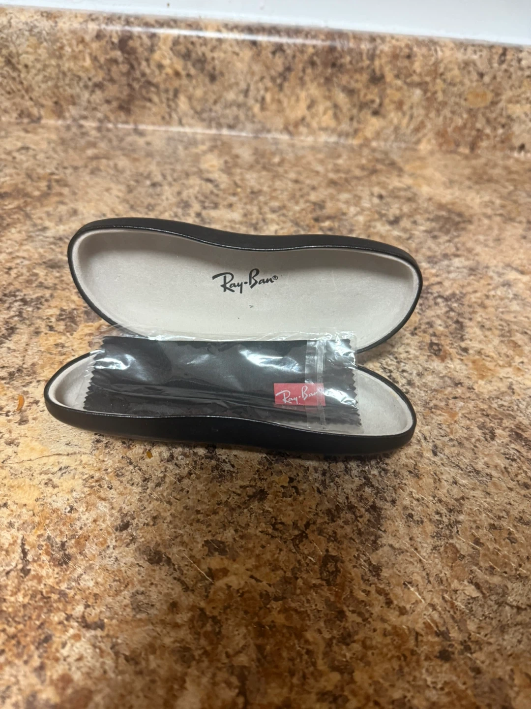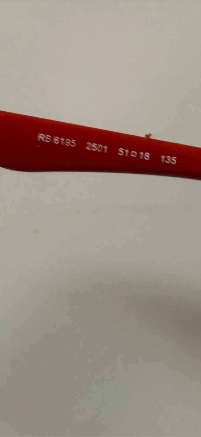 Ray-Ban eyeglasses with a red metal frame. Includes the original case and cleaning cloth. It's a half-rimmed style.