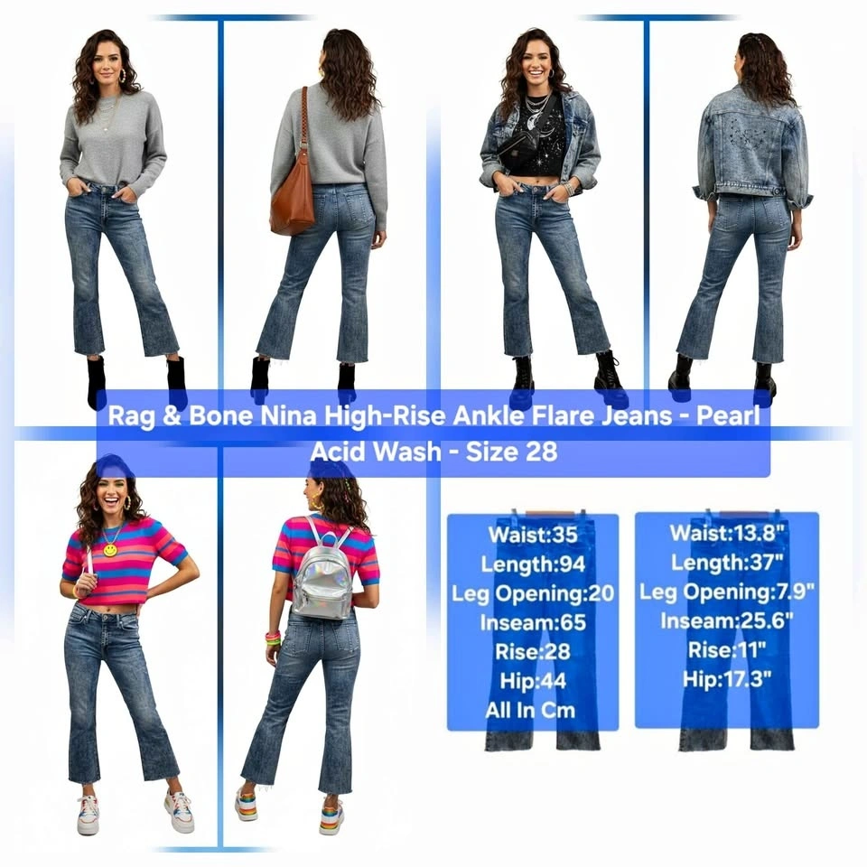 Rag & Bone Nina High-Rise Ankle Flare Jeans - Pearl Acid Wash Si