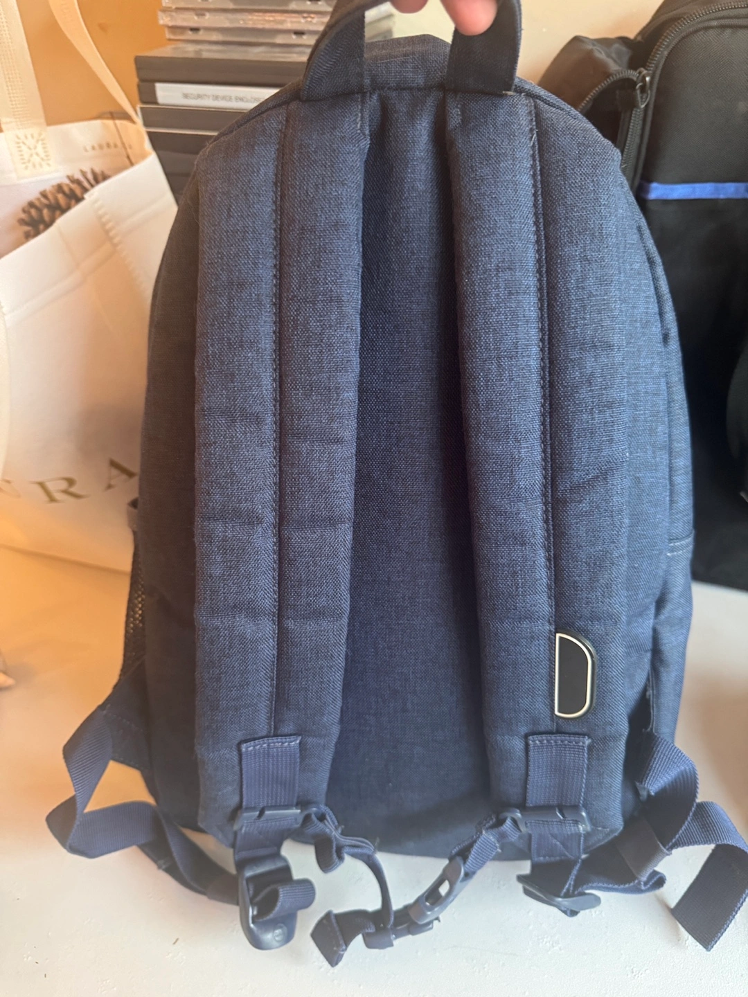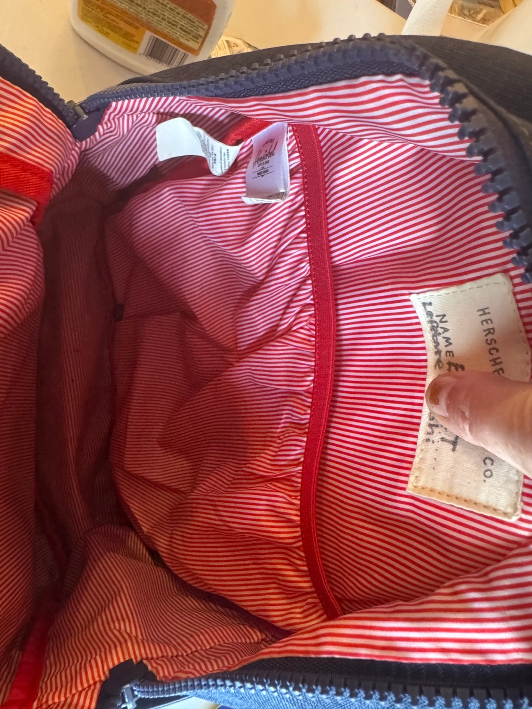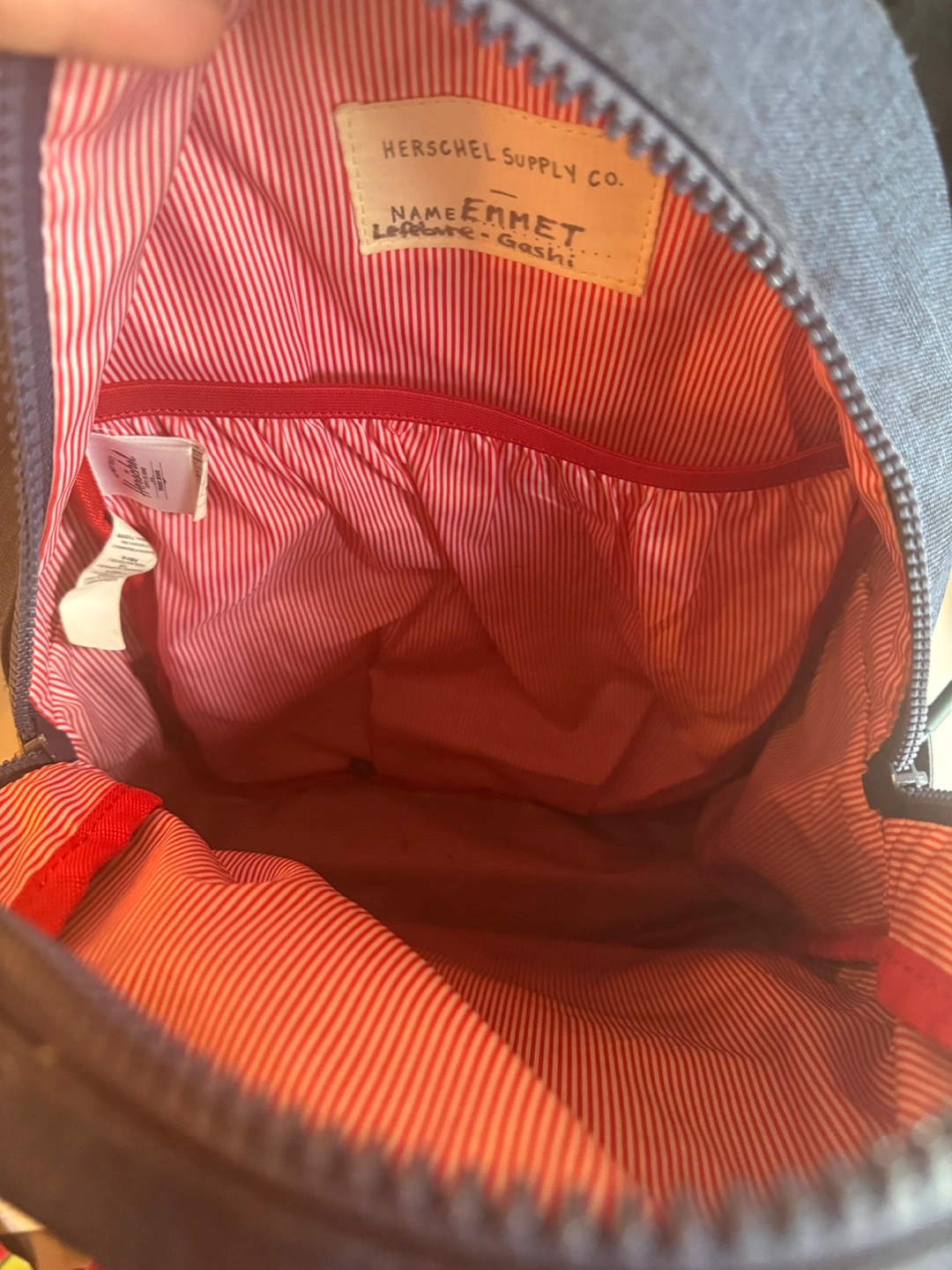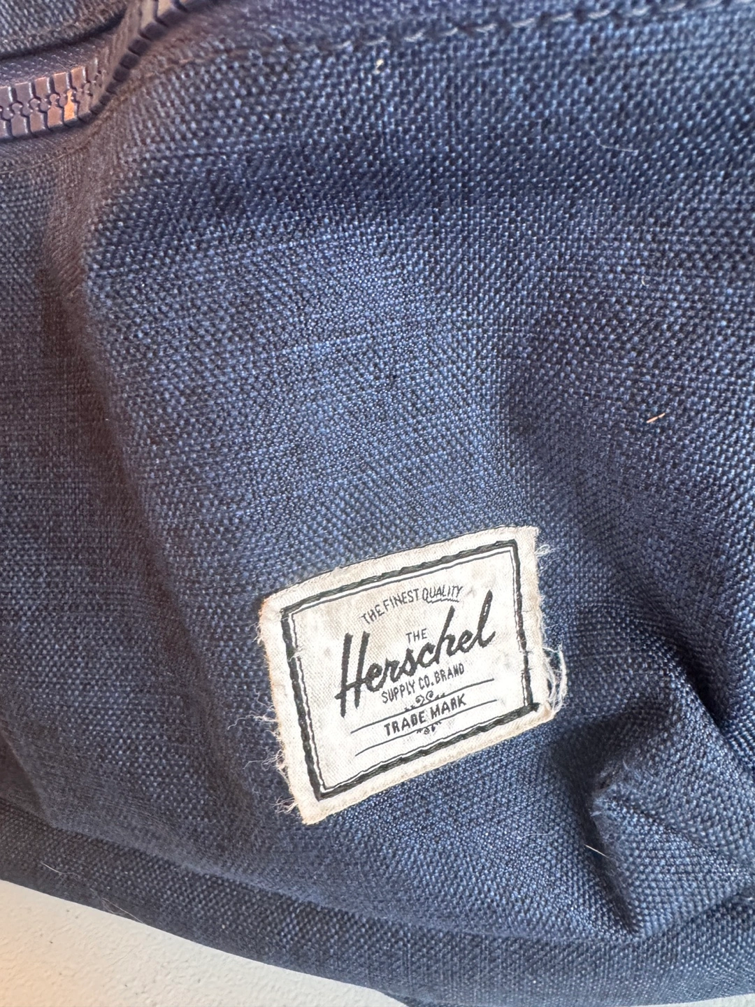 🇨🇦I'm selling a Herschel Supply Co. backpack in great condition! It features a blue denim-like material and the classic Herschel red and white striped interior lining. Perfect for school or everyday use!