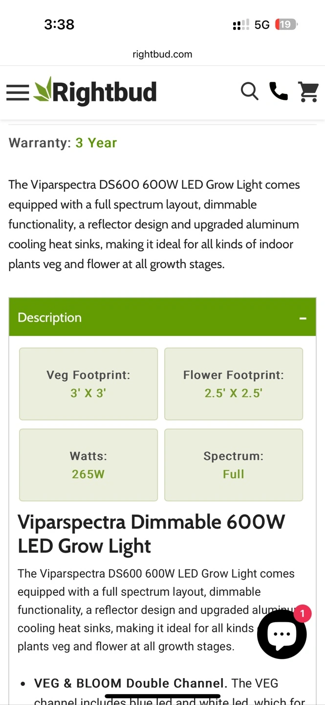 Viparspectra Dimmable 600W LED Grow Light