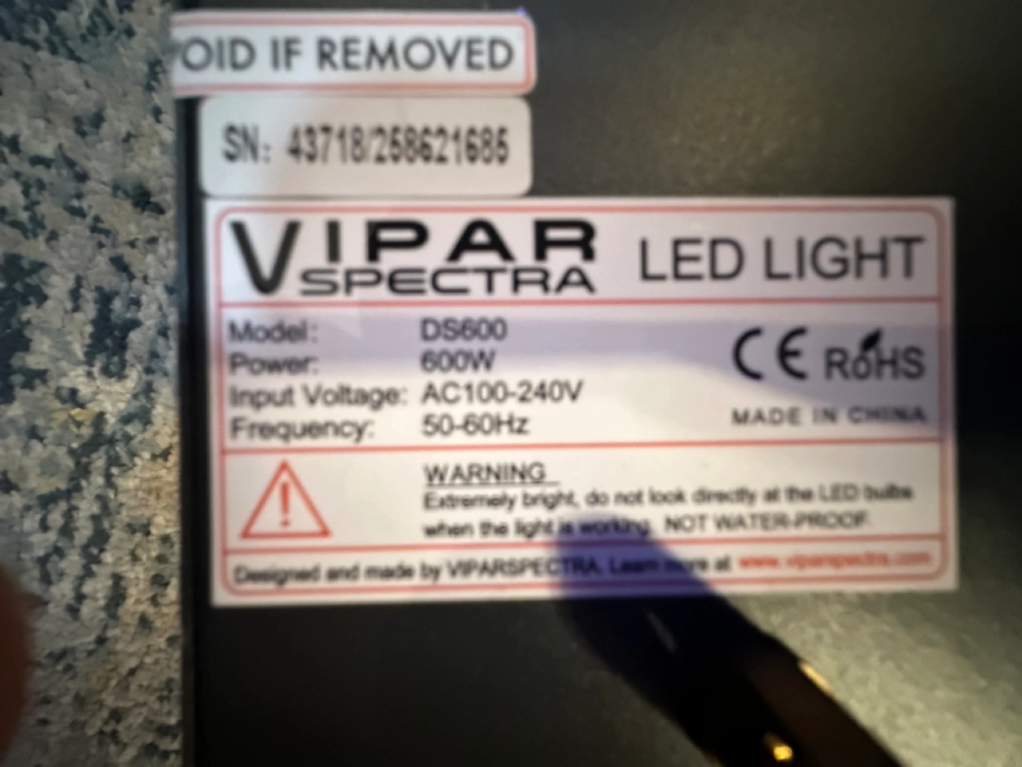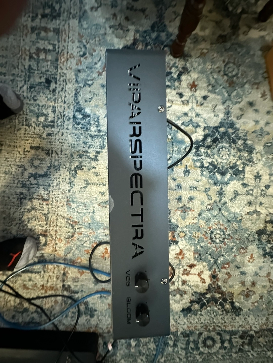 LED grow light with two fans. Includes power cord and hanging kit.