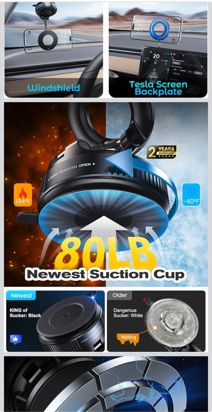 This Jonsomer K007 phone bracket features a vacuum suction base for secure mounting. It offers magnetic attraction and one-handed operation. The bracket is made from PC+ABS+TPU, Metallic Paint, and Zinc Alloy. It allows for full range and multi-angle adjustments.